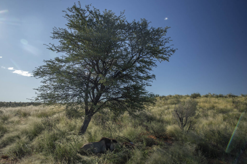 Und dann fanden wir ihn, der mit der dunklen Mähne, dort wo man Löwen eben so vermuten würde: Im Schatten unter einem Baum.