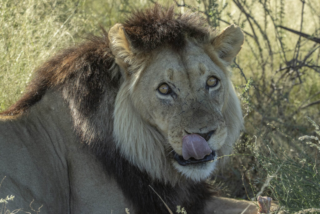Ich möchte dem Löwen ja nicht zu nahe treten, sowohl im wörtlichen als auch übertragenen Sinn, aber das, woran er hier rumkaut, sieht nicht so richtig lecker aus. Zähes Zeugs, da braucht es gute Beisser.