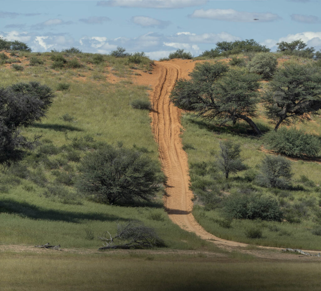 Auch heute war die Landschaft atemberaubend. Der rote Sand überzogen von grüner Vegetation.