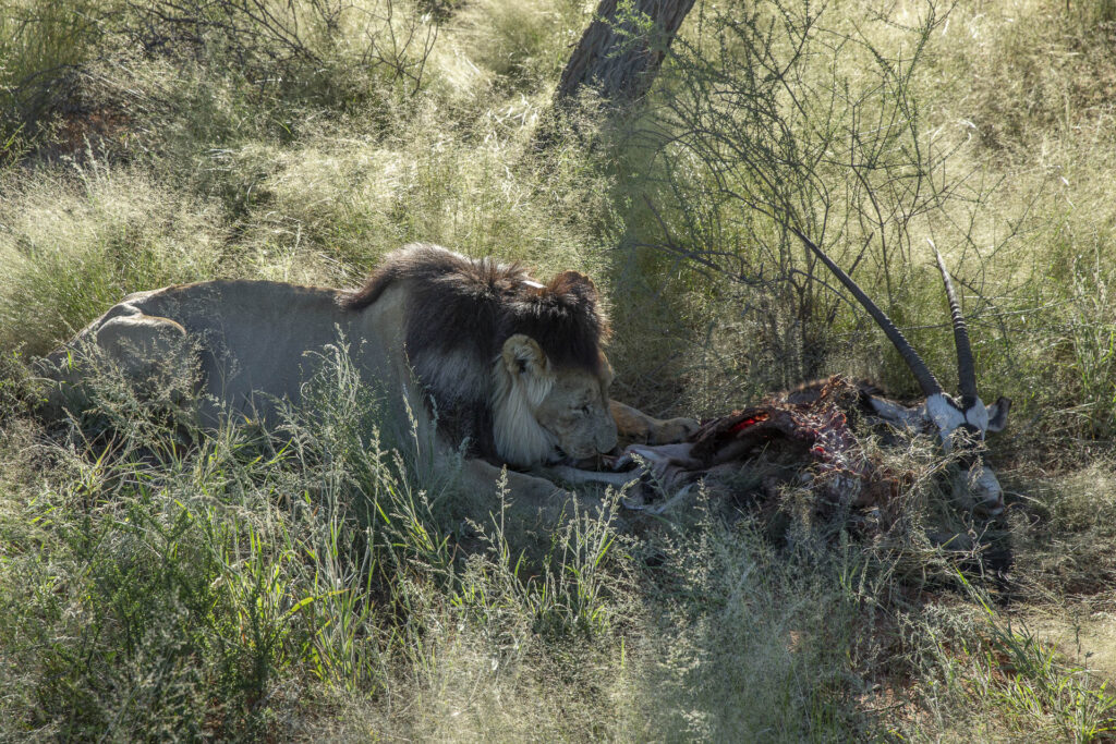 Er war allerdings so sehr mit seinem Oryx oder besser gesagt mit dem, was davon noch übrig geblieben war, beschäftigt, dass er unsere Ankunft ignorierte.