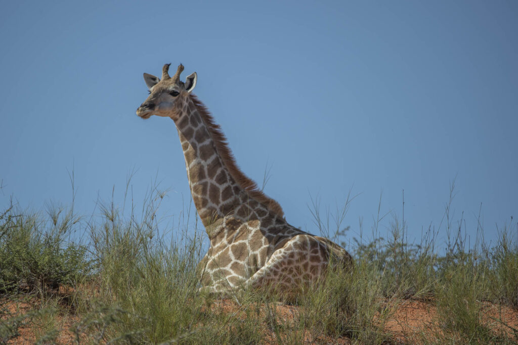 Es ist sehr unüblich eine liegende Giraffe zu sehen. Natürlich können sie relaxed sein, sind sie doch auf der “richtige” Seite des Löwenzauns. Das Reservat ist nämlich durch einen Zaun in einen Teil mit Löwen und einen ohne unterteilt. Immer wenn es zu wenig Futter auf der Löwenseite hat, wird das Tor geöffnet, sodass das Tier-Futter zu den Löwen wandern kann. Das Reservat hat übrigens eine Grösse von 240 km2 , also nicht gerade nur ein paar Fussballfelder.