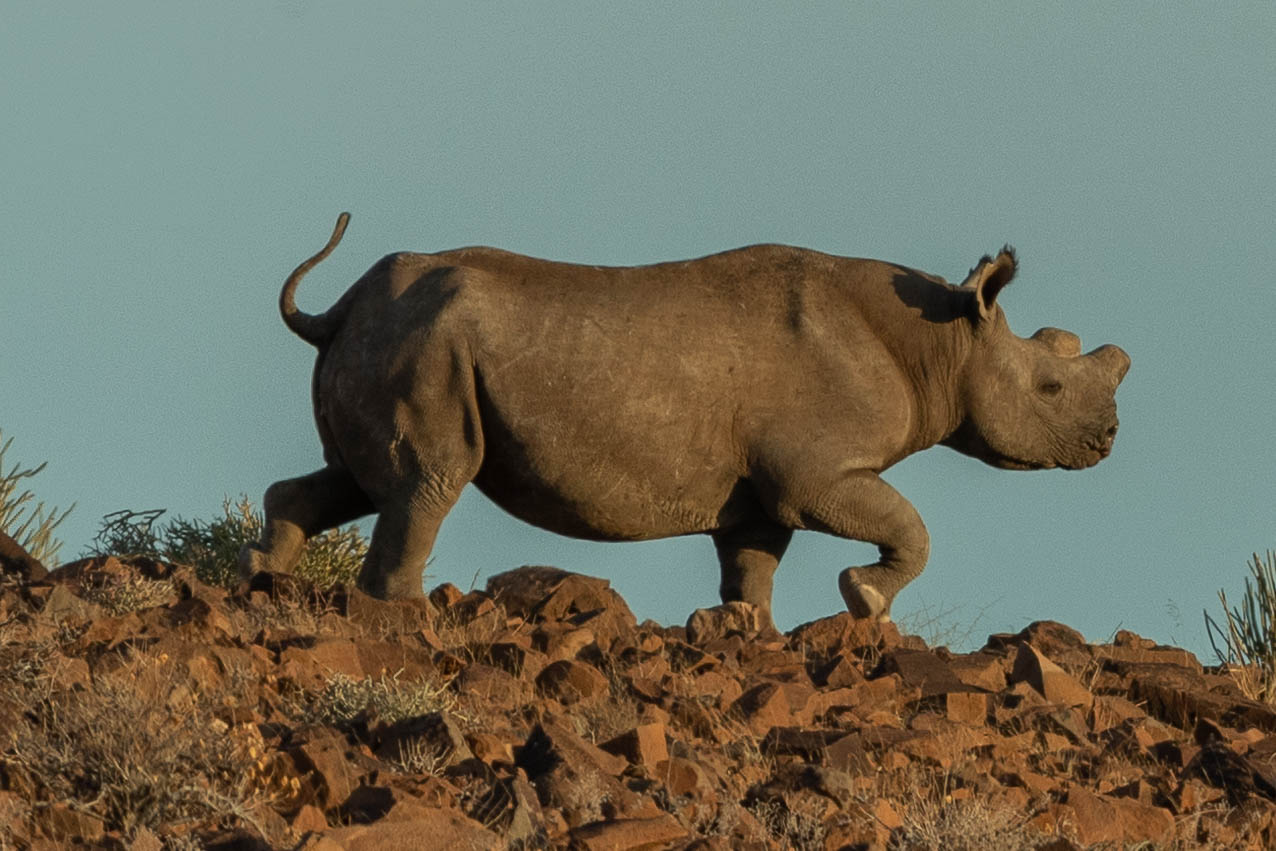 Die Hauptaktivität am heutigen Tag war das Suchen eines “Desert Black Rhino”. Wir hatten am Vorabend von den Guides schon eine Einführung bekommen. Das “Rhino Camp” deckt ein Gebiet von rund 1300km2 ab, auf dem sich aktuell 16 Rhinos aufhalten….