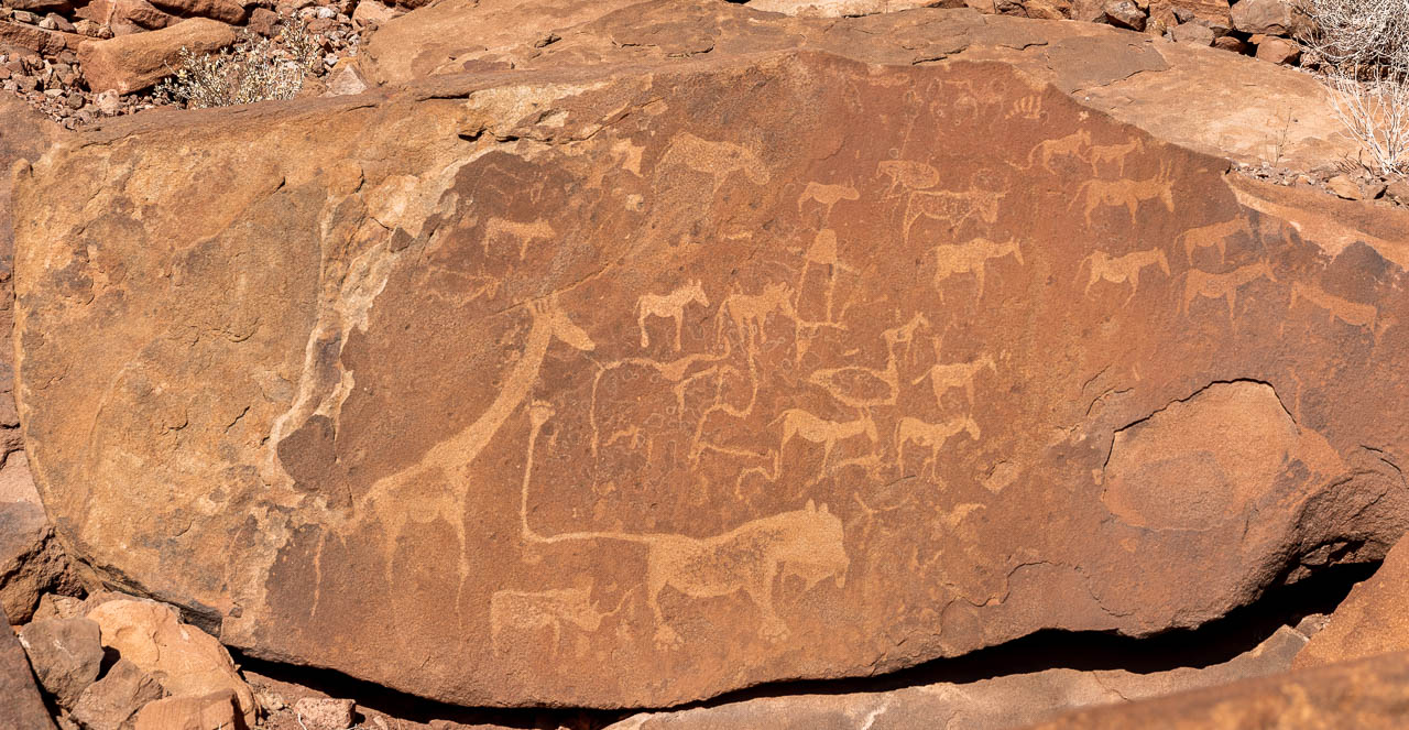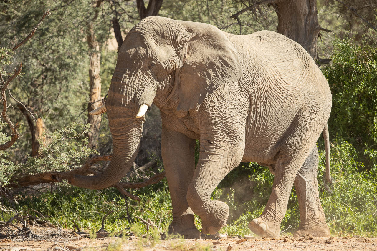 Neben den Felsmalereien kann man in dieser Region ausserdem Elefanten beobachten, die sich an das Klima in der Wüste angepasst haben. Und die Suche nach diesen Wüstenelefanten stand heute auf dem Programm. Die Region wird als “Concession Area” verwaltet, aber…