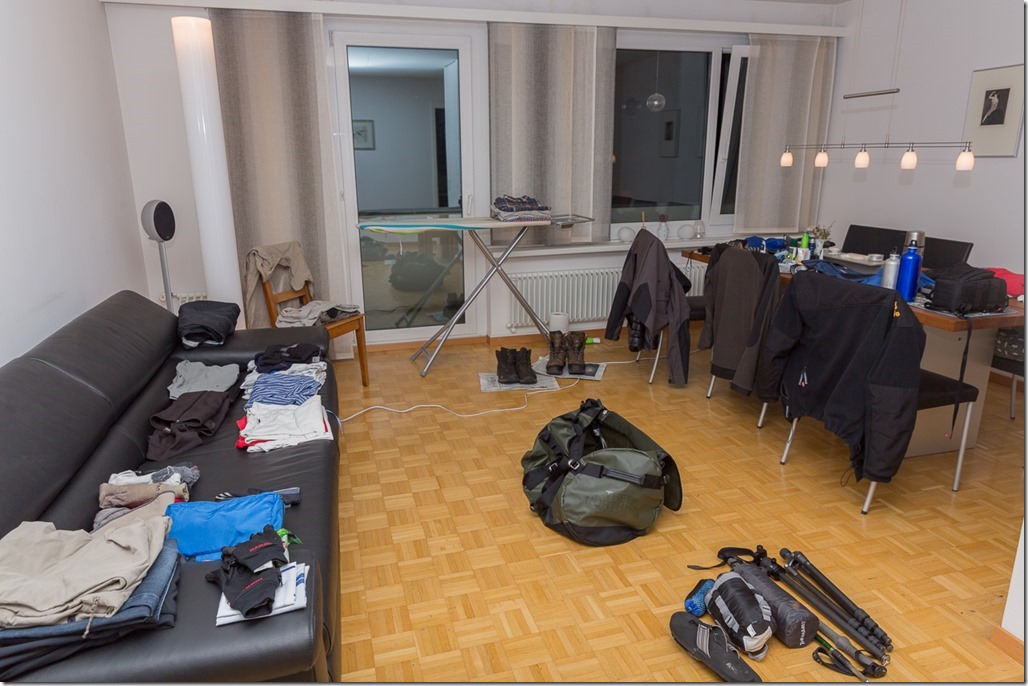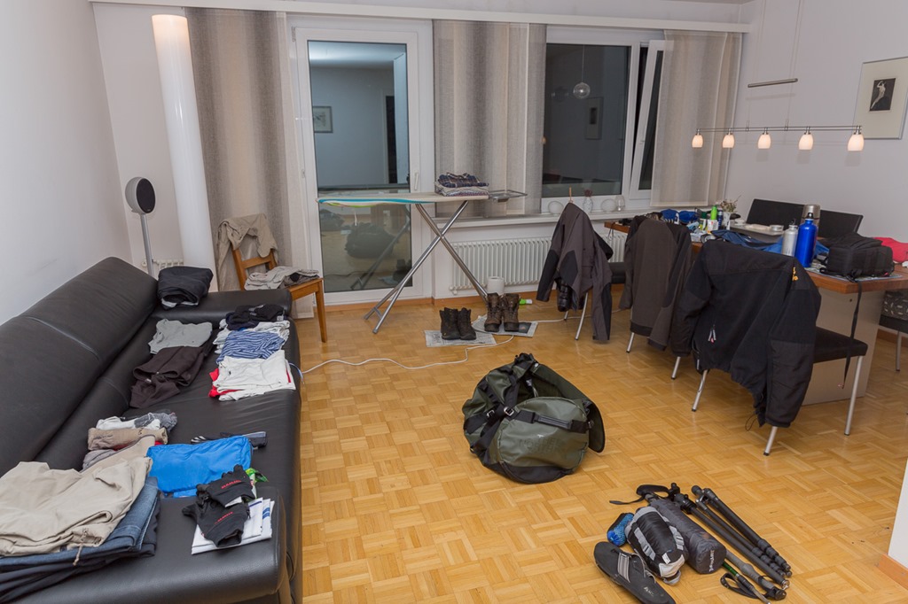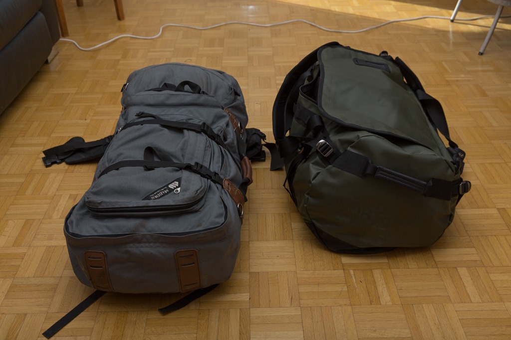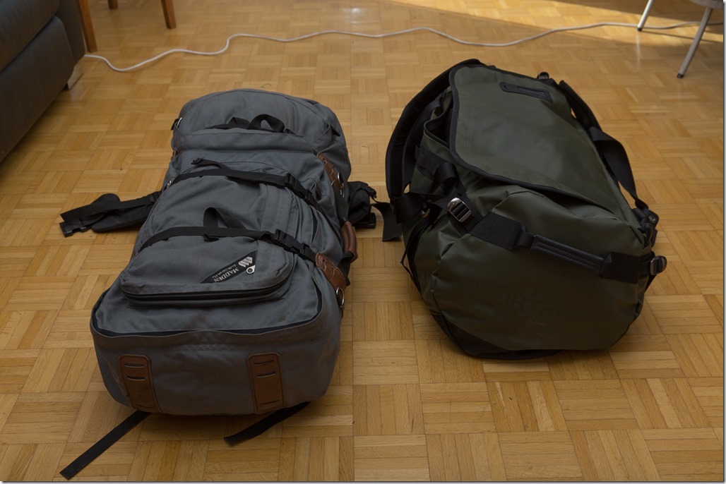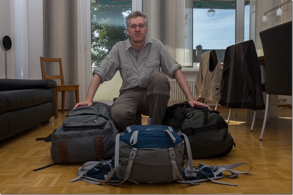 Schlussendlich musste ich kapitulieren! In einer Tasche schaffte ich es nur, wenn ich sowenig Kleidung mitnehme, dass ich jeden dritten Tage waschen müsste. Und dann hätte ich auch nicht die guten schweren Wanderschuhe dabei. Also entschloss ich mich für zwei locker gepackte Gepäckstücke.