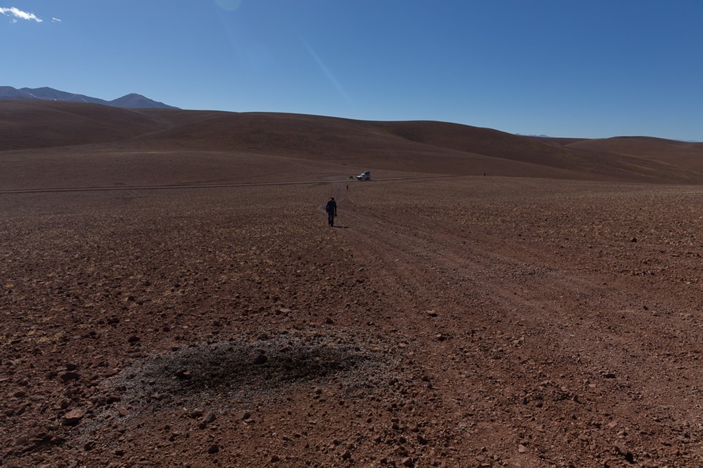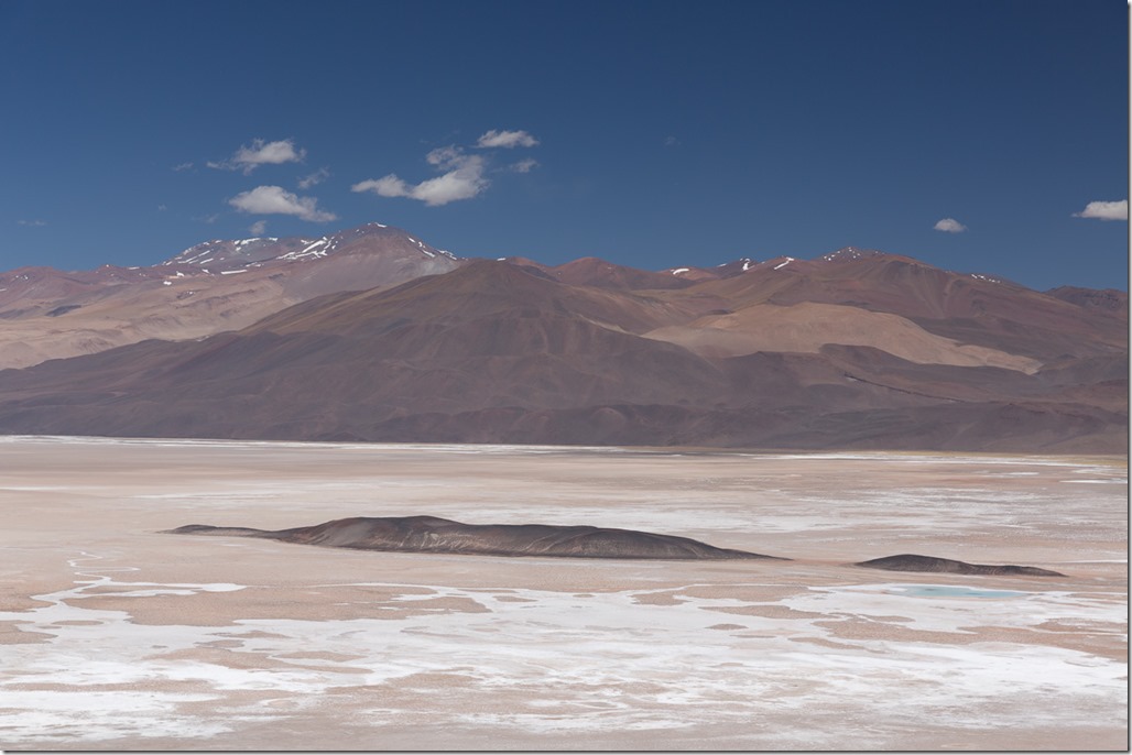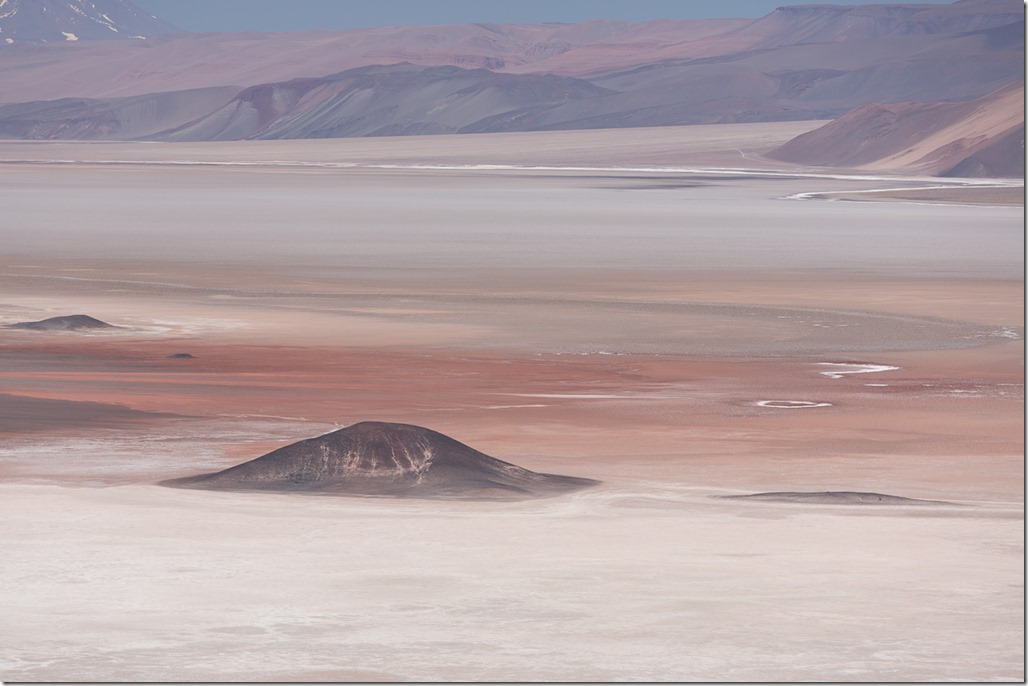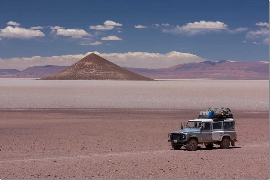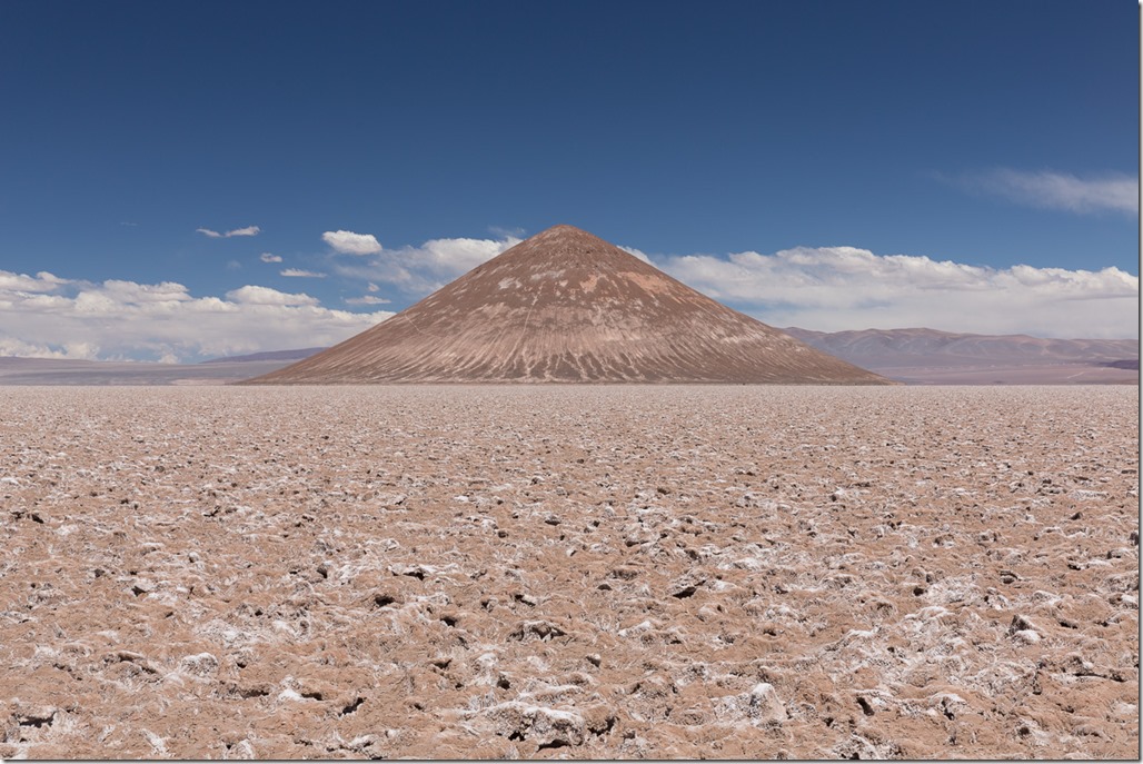 Nach dem Mittagsessen ging es eine ganze Zeit über Stock und Stein, bevor wir zum letzten Highlight des heutige Tags kamen: Einem perfekten Konus im Salzsee “Salar de Arizaro” sehen