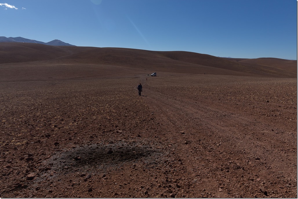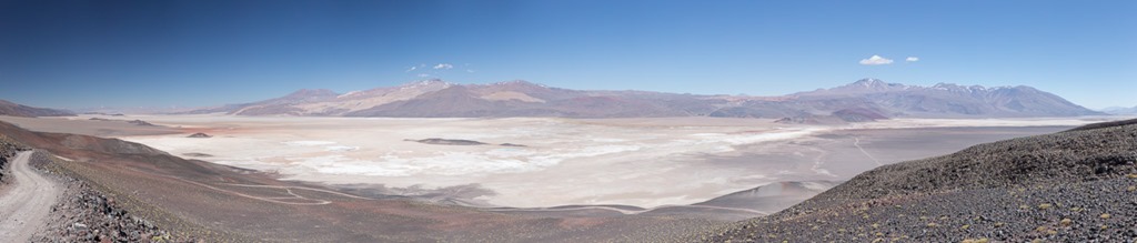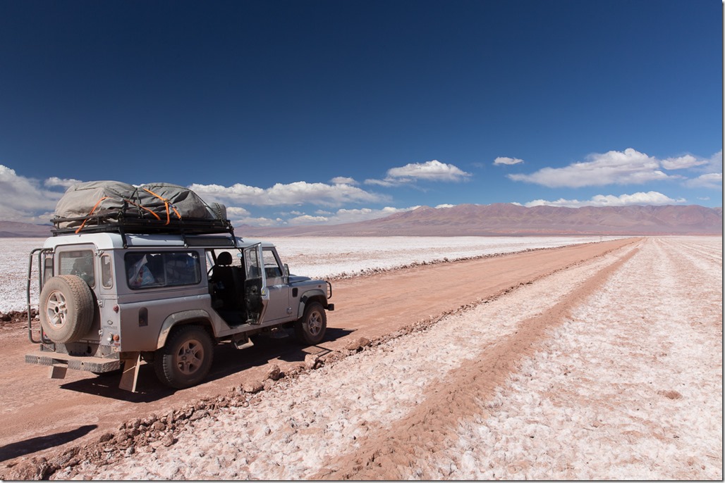 Nach dem Konus ging es nochmals 60-70 km auf einer mehr oder weniger holprigen Strasse über den Salzsee bis nach Tolar Grande. Die Strasse war meist total gerade. Zu Fuss will ich das nie machen müssen.