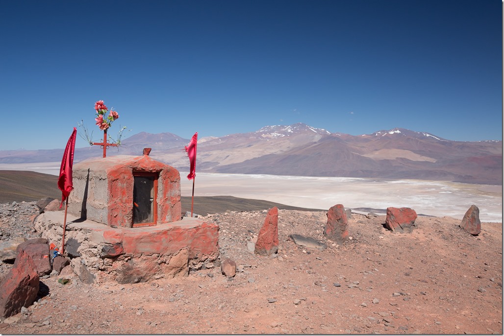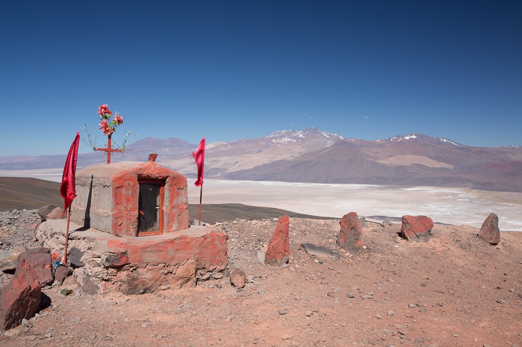 Nächstes Highlight auf der Reise war der “Salar de Antofalla”, der längest Salzsee der Welt. Hier noch im Vordergrund eine Gedenkstätte für die Fahrer.
