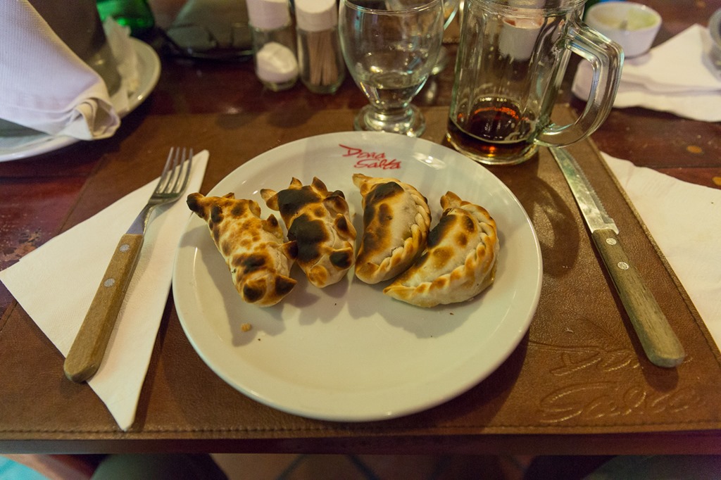 Nach der vierstündigen Fahrt nach Salta war der Hunter da. Und der wollte mit Empanadas mit Käse und Fleischfüllung und einen schwarzen Bier aus Salta gestillt werden. Wirklich sehr fein diese Empanadas.