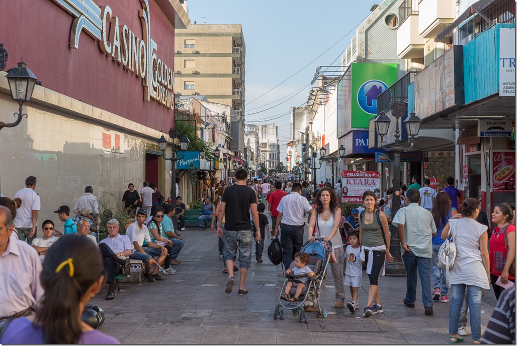 Bevor es zum Nachtessen ging, hatten wir noch etwas zweit, in der Stadt zu bummeln. Das das nicht zu meinen Lieblingsbeschäftigungen zählt spielt in diesem Fall nicht so eine grosse Rolle. Es war auf jeden Fall interessant, die Fussgängerzone von Salta zu durchschreiten. Ich hatte offenbar die “Schuh-billige Kleidung-Handy”-Strasse erwischt, wie sich später herausstellte. Offenbar sind hier die Strassenzüge thematisch gegliedert.