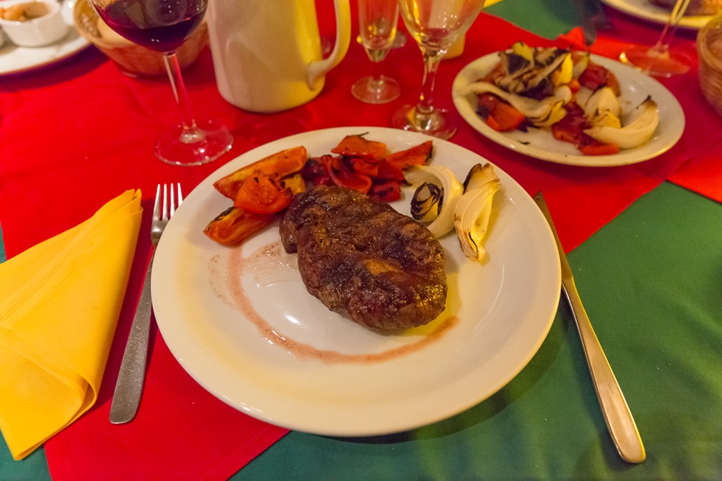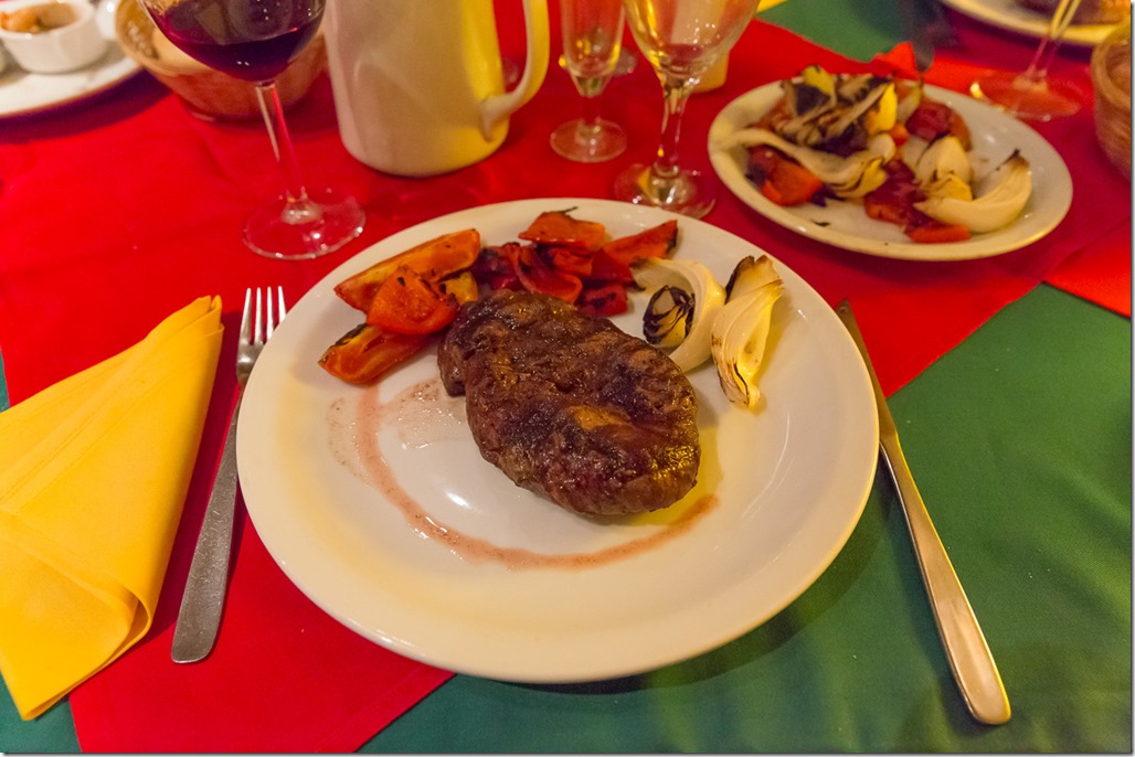 Ein tüchtiges Stück Fleisch gab es zum Nachtessen. Da in Argentinien die Tiere ganz anders geschnitten werden, gibt es keine direkte Bezeichnung für dieses Fleischstück im Vergleich zu unserer Namensgebung. Und wenn man einen Argentinier nach der Beschreibung fragt, von welchem Teil des Tieres das Fleisch her kommt, bekommt man immer einen andere Antwort. Das ist alles eigentlich unwichtig. Hauptsache es war sehr lecker!