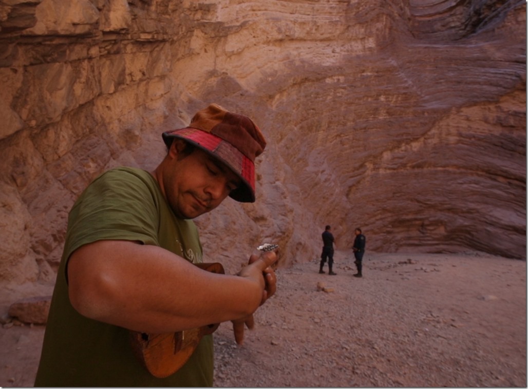 Die Akustik in diesem Kessel war besonders gut. Das nützte eine kleine Band aus, um die Touristen mit Argentinischer Musik zu unterhalten (und CDs zu verkaufen). Listigerweise war einer davon 16 Jahre in der Schweiz gewesen. Wir konnten uns mit ihm auf Schweizerdeutsch unterhalten.