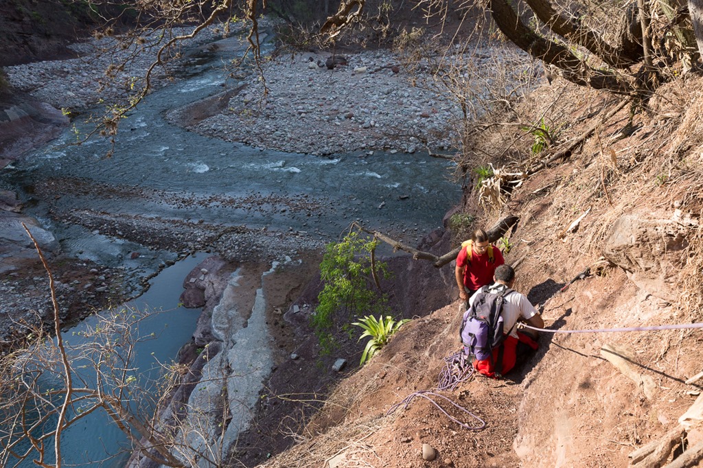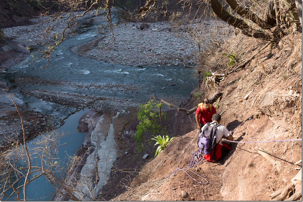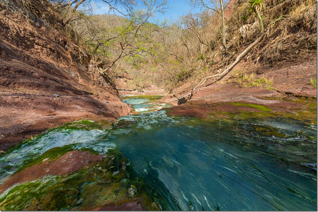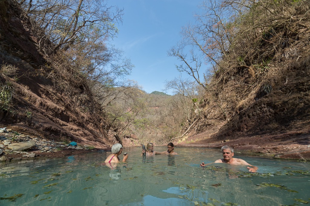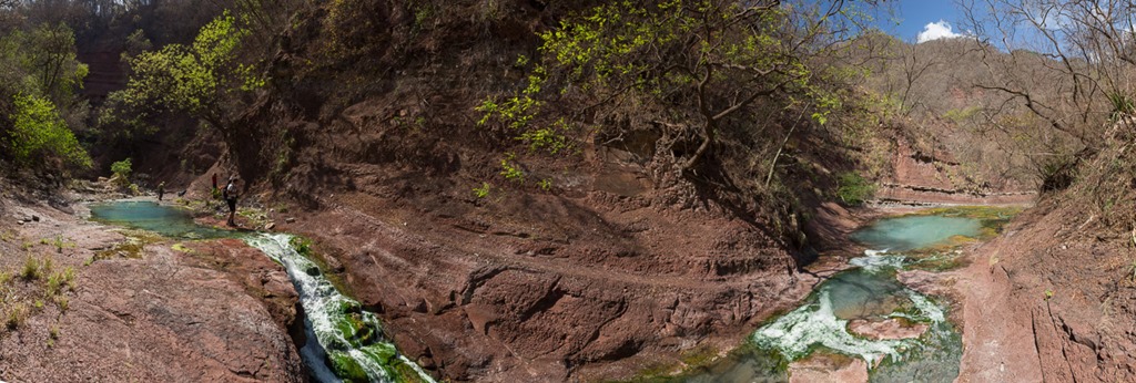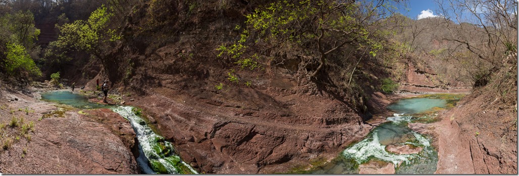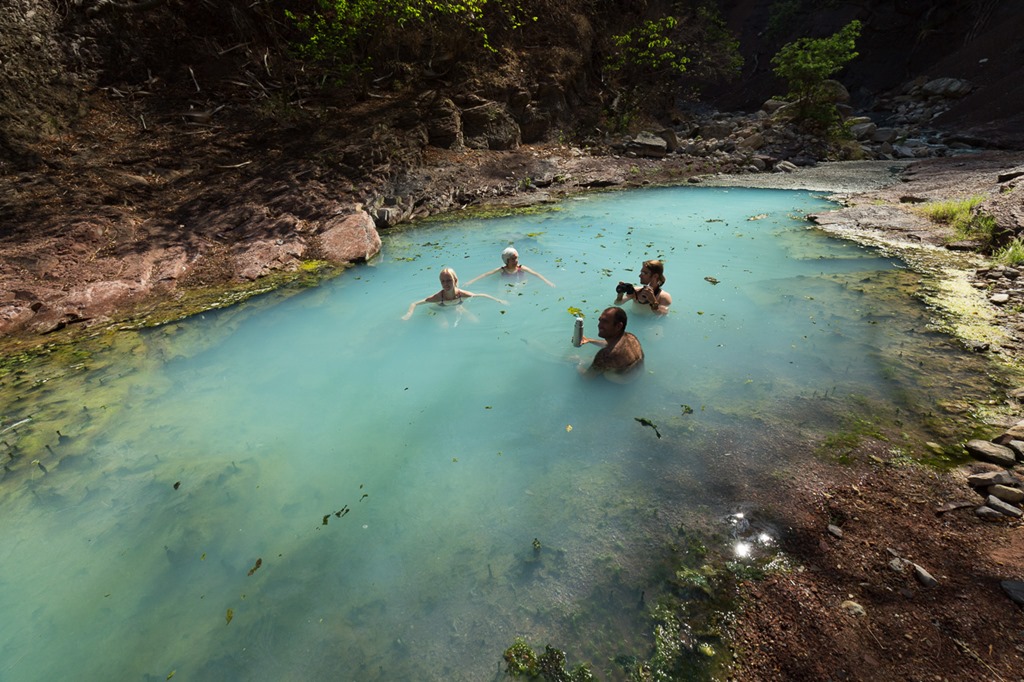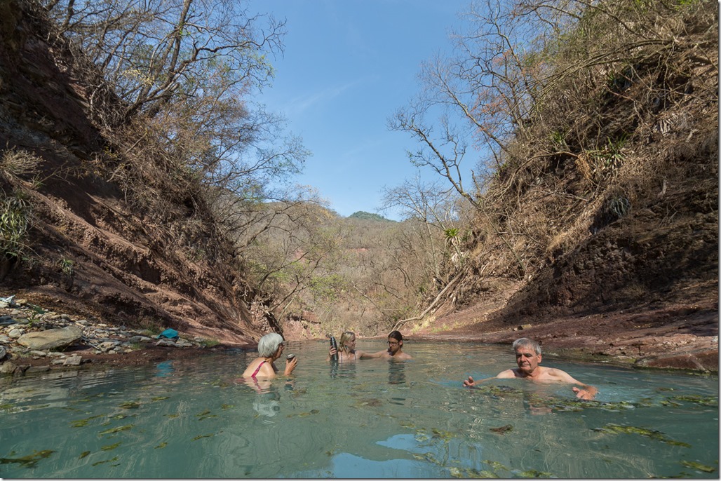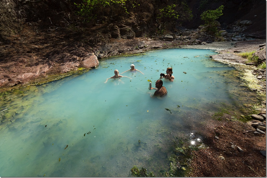 Der Grund, warum wir genau hier heruntergestiegen waren, lag an einer versteckten Thermalquelle in einem Zufluss zum eigentlichen Fluss. Nur bekannt unter der einheimischen Bevölkerung gibt es kaum einen Touristen, der sich hier hin verläuft.