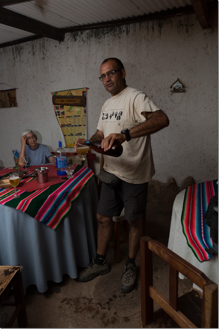 Pueblo, unser Fahrer, hier als Kellner. Man beachte die vernünftige Grösse der Bierflasche