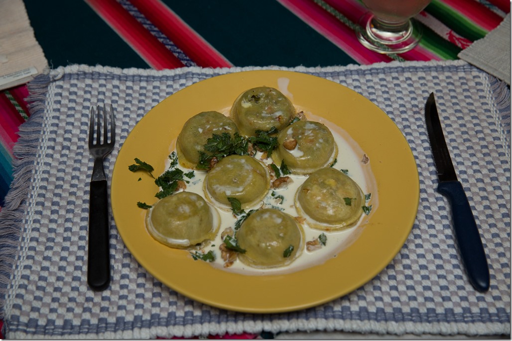 Und hier noch der Hauptgang des Nachtessens. Teigtaschen mit Minze und Baumnüssen, zubereitet von Freddy. Freddy ist nicht irgendein ausgewanderter Schweizer sondern ein richtiger Argentinier, der zusammen mit seiner Frau, eine kleine Herberge in San Francisco betreibt. Abermals lecker! Das “lecker” kann ich aus Optimierungsgründen jetzt dann bald weglassen, denn das Essen hier ist immer gut.