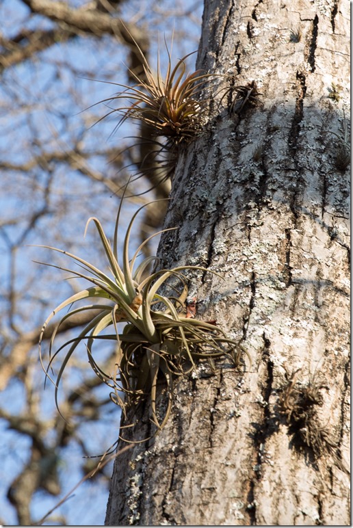 Und nun kommt, was ich schon gestern angekündigt habe: Epiphyten. Das sind Pflanzen, die auf andern Pflanzen wachsen und dadurch gewisse Vorteil (z.B. Licht) haben. Es sind aber im Gegensatz zu Misteln keine Parasiten, da sie die Nahrung nicht von der Wirtspflanze beziehen.