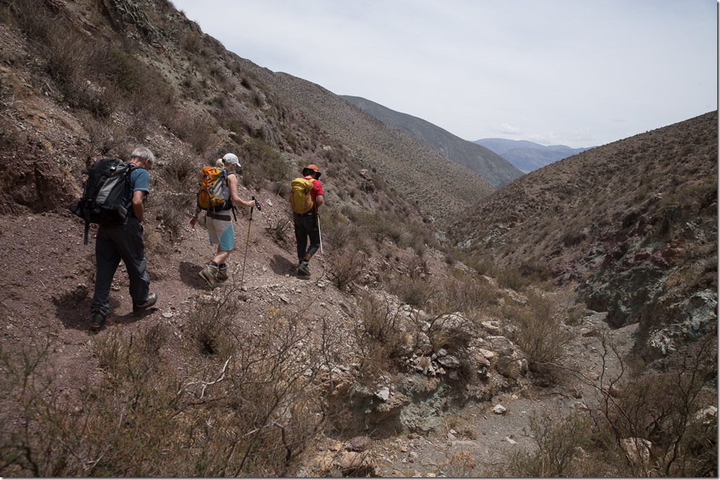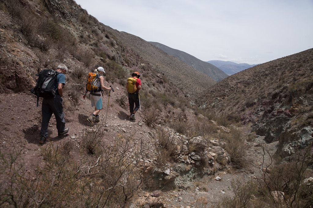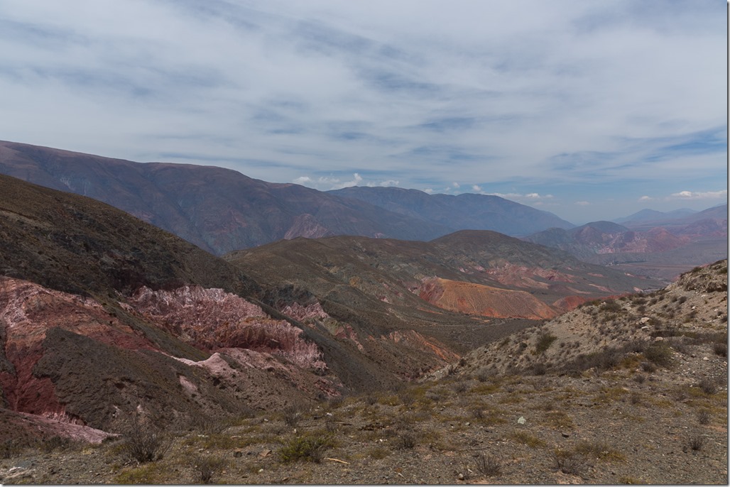 Der heutige Tag war ja als Akklimatisations-Tag eingeplant. Das heisst aber nicht einfach faul auf der Haut rumliegen, sondern sich mit einer leichten Wanderung etwas bewegen. Von Purmamarca, das auf 2400m liegt, ging es in einer leichten Wanderung auf einen nahegelegenen Übergang in ein anderes Tag.