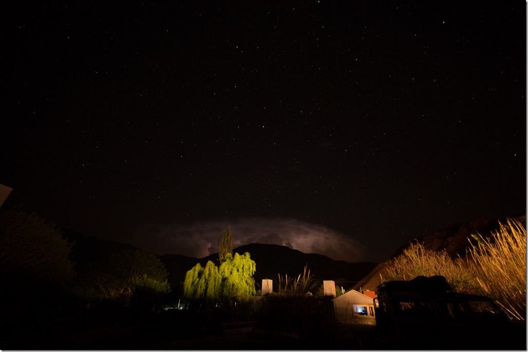 In der Ferne konnten wir die Blitze eines Gewitter beobachten, während die Sterne über uns funkelten. Das Gewitter lag genau in der Richtung, in der wir am Vortag waren. Es kann gut sein, dass es dort nun am Regnen war.