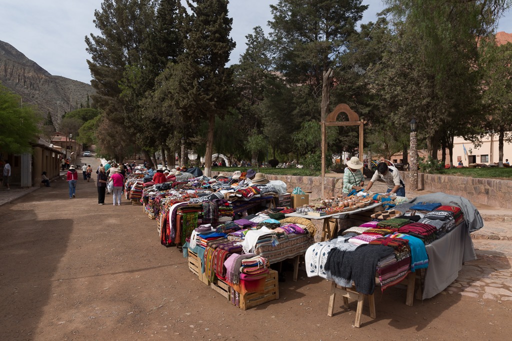 Am späten Nachmittag habe ich noch den Markt besucht. Wie schon erwähnt gibt es hier etwas Tourismus. Entsprechen sind auch die Stände darauf ausgerichtet. Dass die meissten Artikel aus Bolivien stammen steht nur im Kleingedruckten. Auch haben sich viele offensichtlich beim gleichen Grosshändler mit Sachen eingedeckt, sind doch viele Artikel zwischen den Ständen identisch.