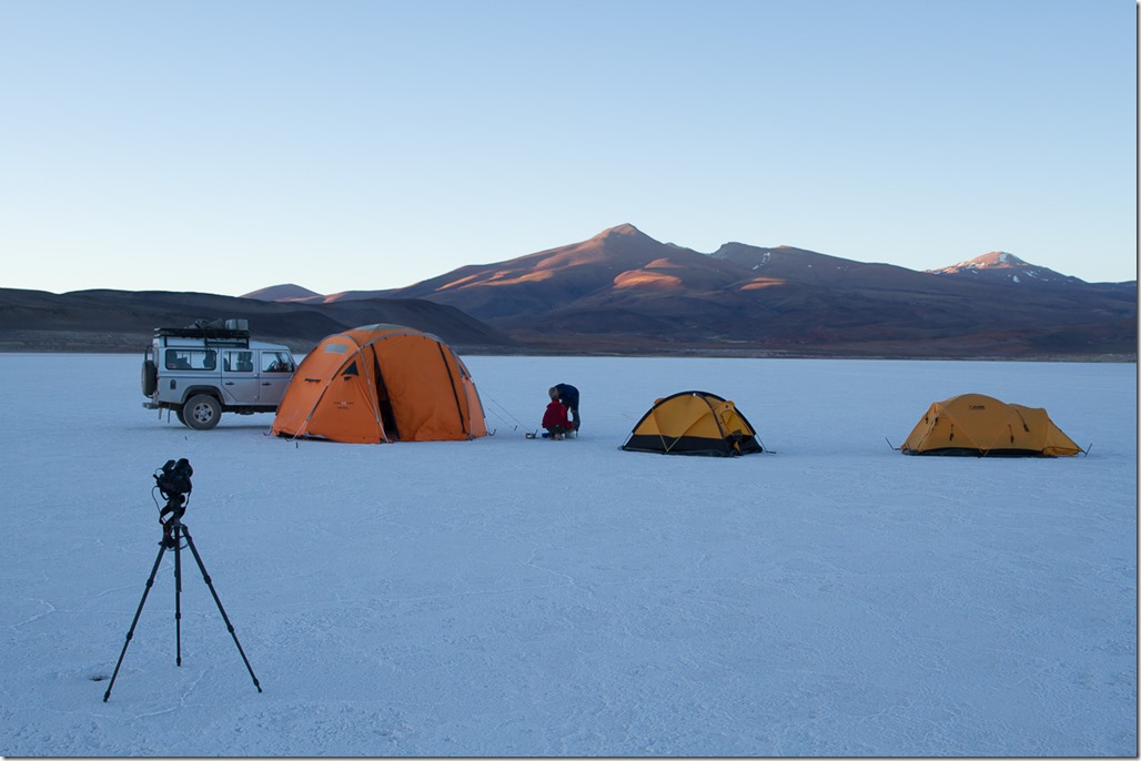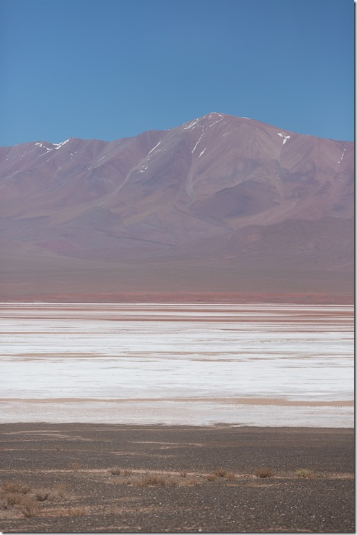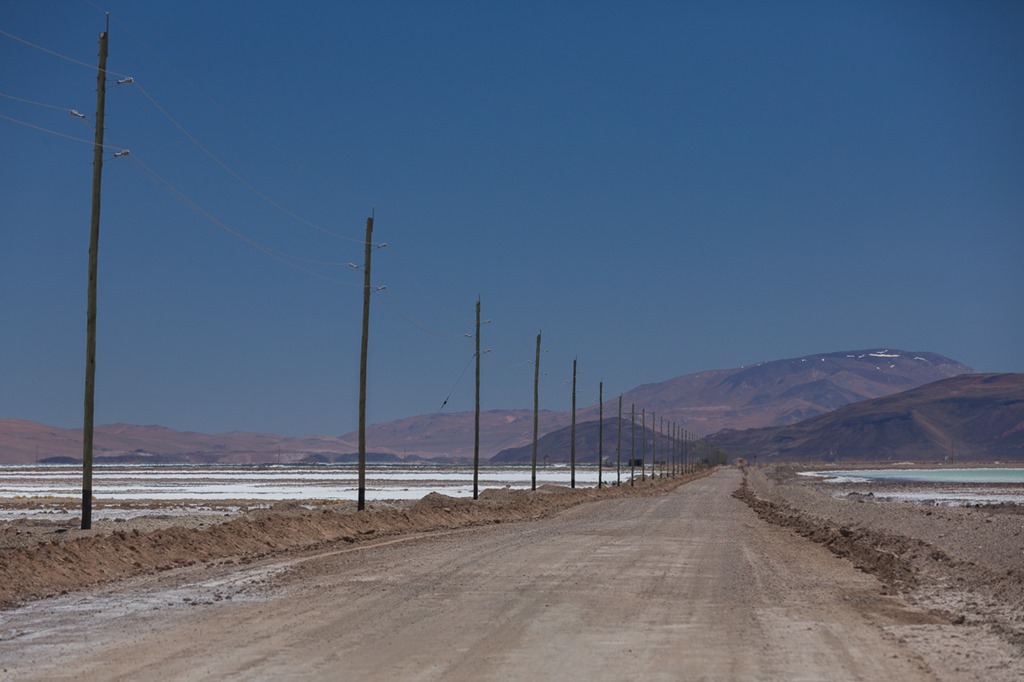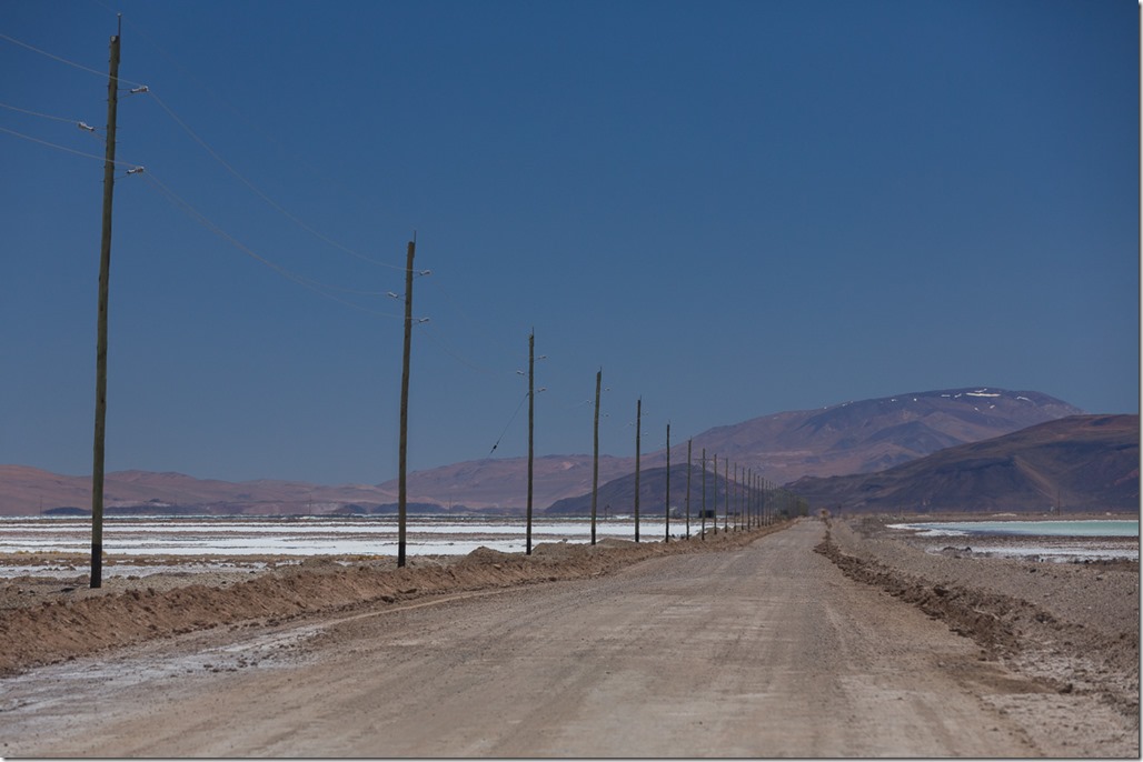 Und unserem weiteren Weg lag noch ein Salzsee, der zur Lithium Förderung genutzt wird. Das Verfahren ist recht kompliziert, so dass ich das mir und jedem Leser lieber ersparen möchte. Sobald aber irgendetwas mit Rohstoffförderung im Spiel ist, wird die Infrastruktur sofort deutlich besser. Die Strassen sind weniger holprig, es hat eine Stromleitung und meist auch gleich ein Handynetz.