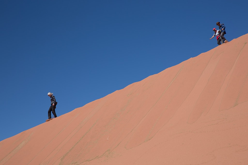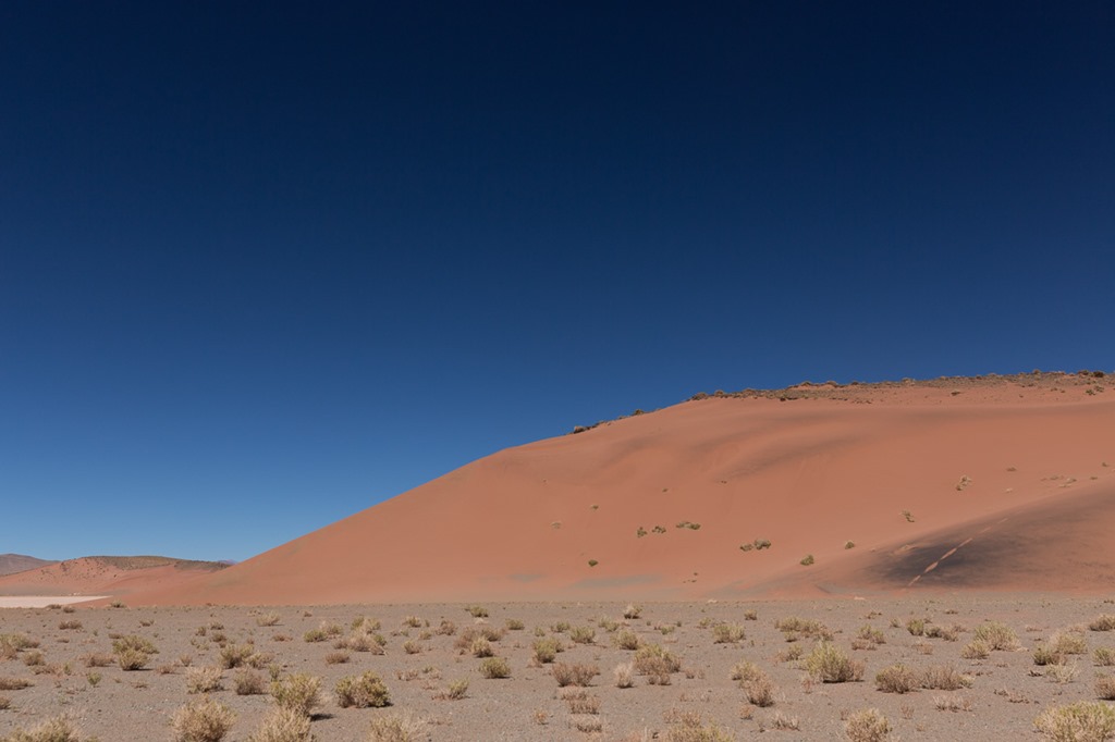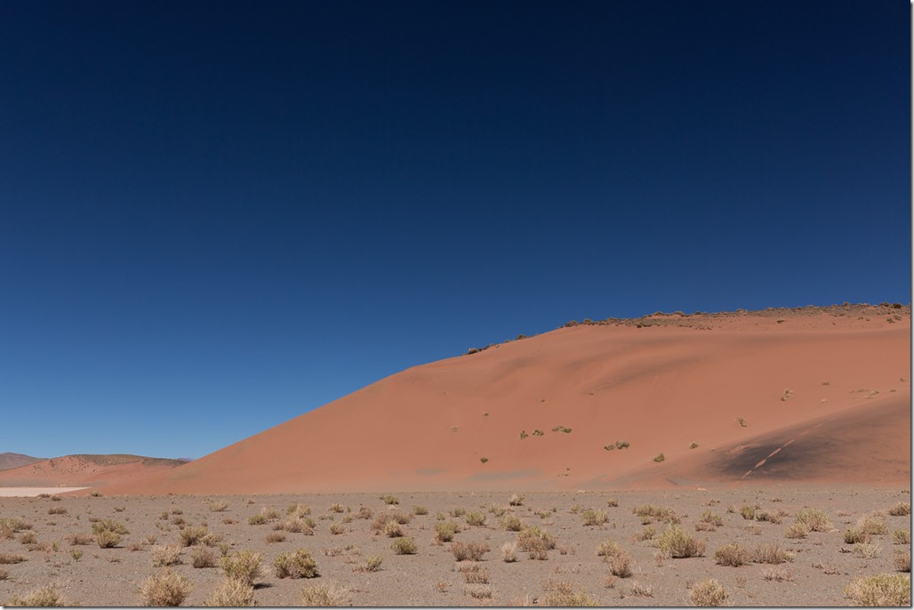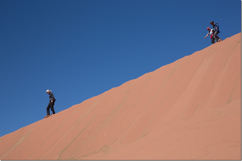 Bis plötzlich eine rote Sanddüne auftauchte. Diese konnte man nicht einfach so vorbei ziehen lassen, sondern musste sich natürlich nach oben kämpfen