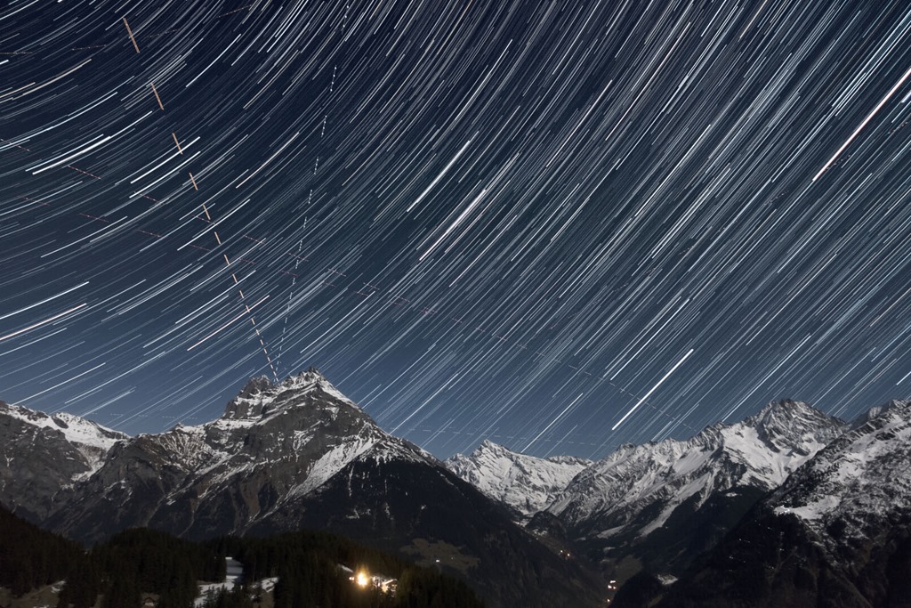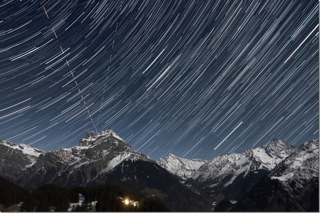 Ich habe ja noch eine klein Kompakt-Kamera, nichts Weltbewegendes, aber damit kann man ganz einfach eine Zeitraffer-Serie machen und dann auf dem PC zusammensetzen. Was rauskommt ist zum Beispiel ein Startrail Bild von den beiden Windgällen.