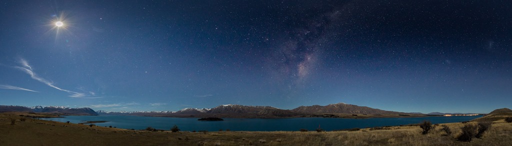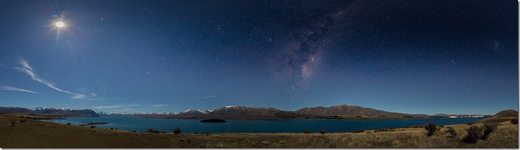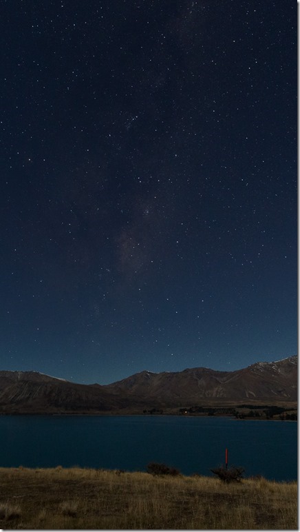 Da wäre da einmal der Wochenend-Ausflug nach Neuseeland. Wochenendausflug nach Neuseeland, huch? Halb so wild, von Melbourne aus alles kein Problem. Das folgende Bild zeigt ein Nachtpanorama von Lake Tekapo. Es wäre ja ganz nett, wenn da nicht dieser Störefried am linken Bild wäre … Aber da ich mir nicht den Zeitpunkt für den Ausflug aussuchen konnte, macht man eben das beste aus der Situation.