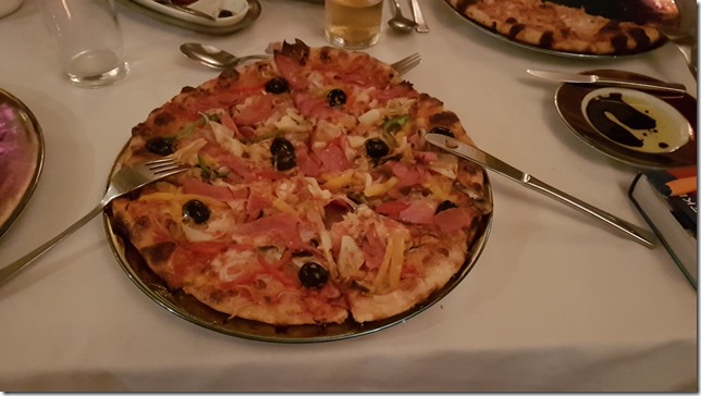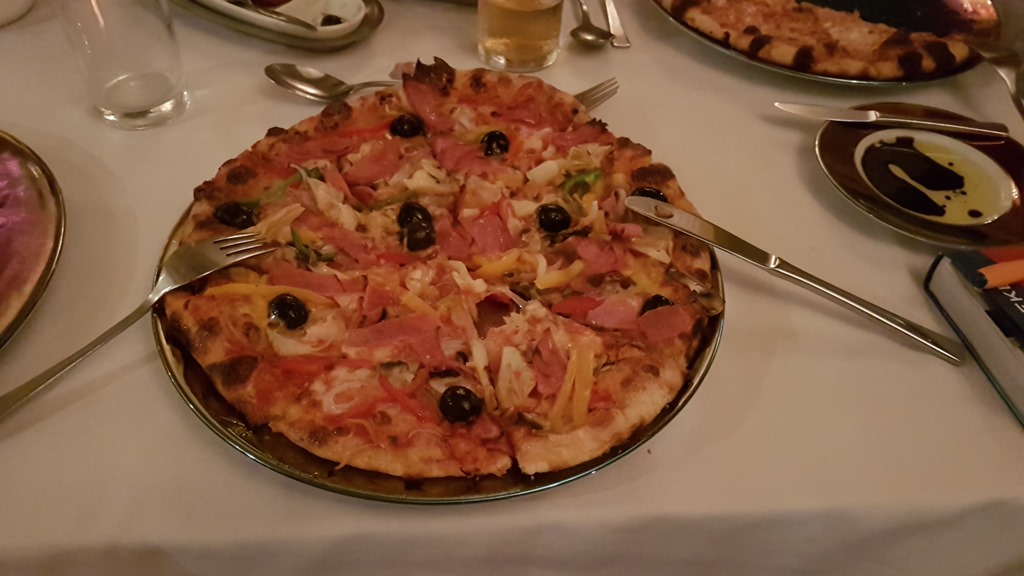 Nach diesem “anstrengenden” Tag muss man noch etwas Richtiges essen und was gibt es passenderes als eine Pizza? Meine weltweite Referenzpizza “Quatro Staggione”.