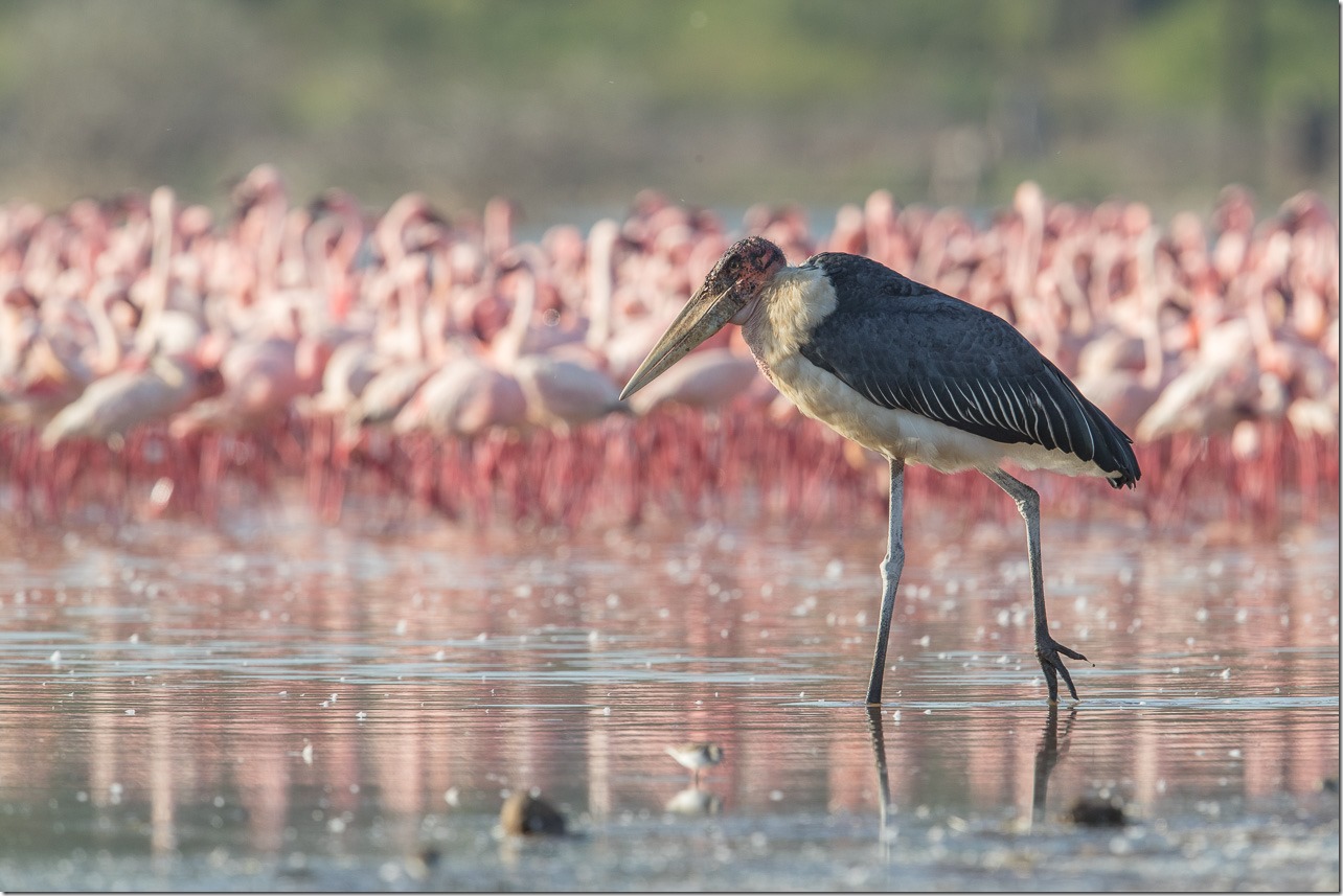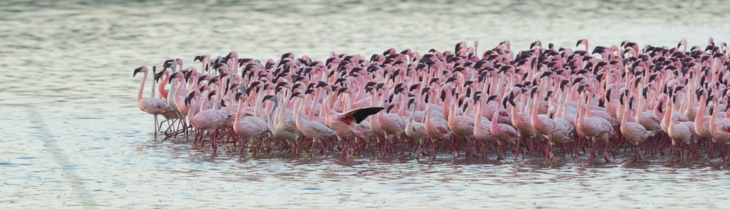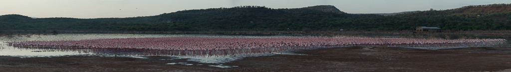 Bevor es heute zum nächsten See, dem Lake Nakuru, weitergeht, geht es am Morgen nochmals zu den Flamingos. Dank der guten Beziehungen unseres Guides zu den Parkwächtern, hatte er gestern bereits ausgehandelt, dass wir heute morgen ohne “Paperwork” (judihui, keine 10 Minuten warten bis irgendwelche Formulare in n-facher Kopie ausgefüllt sind) und Gebühren nochmals in den Park dürfen.