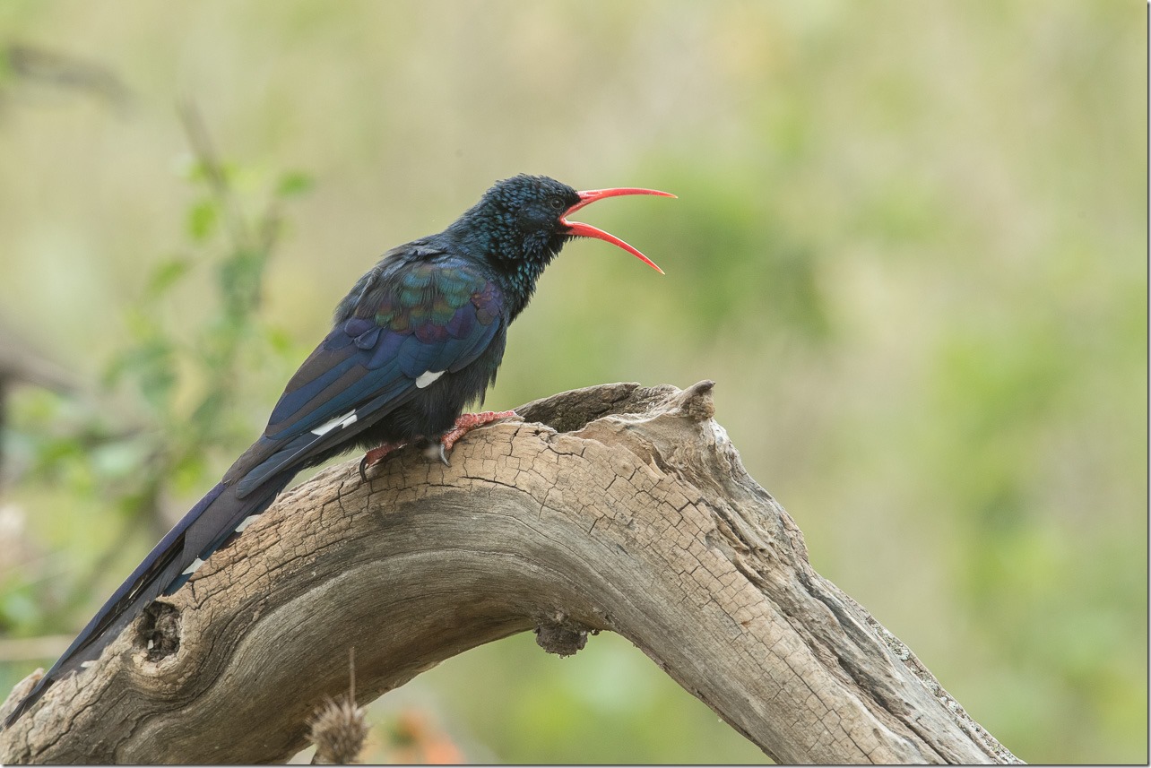 Dieser Wood Hoopoe ist mit irgendetwas nicht zufrieden. Dem Essen oder dem lauten Nachbar?