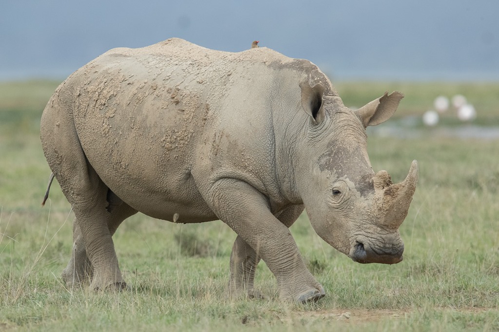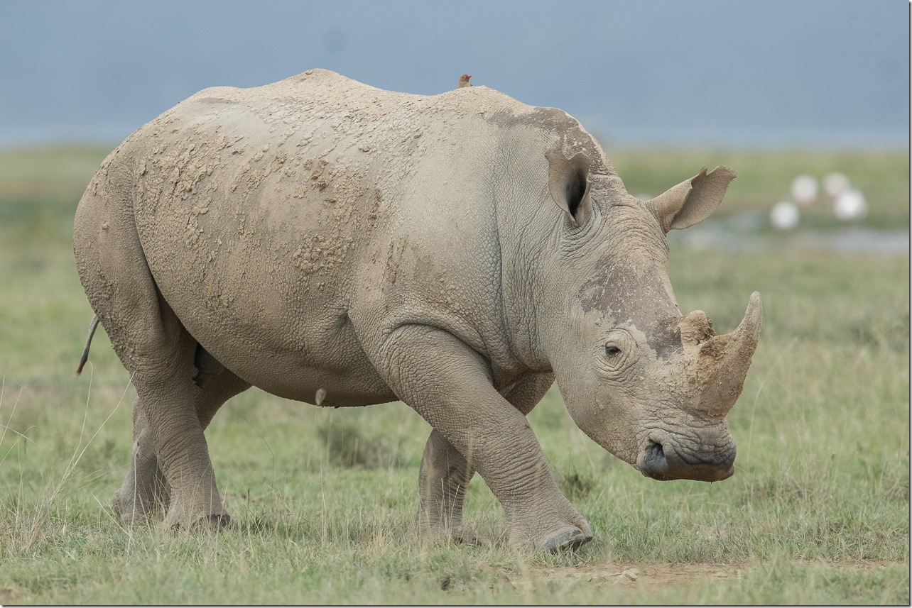 Hier sieht man einen “Red Billed Oxpecker” und ganz nebenbei noch ein Rhino.