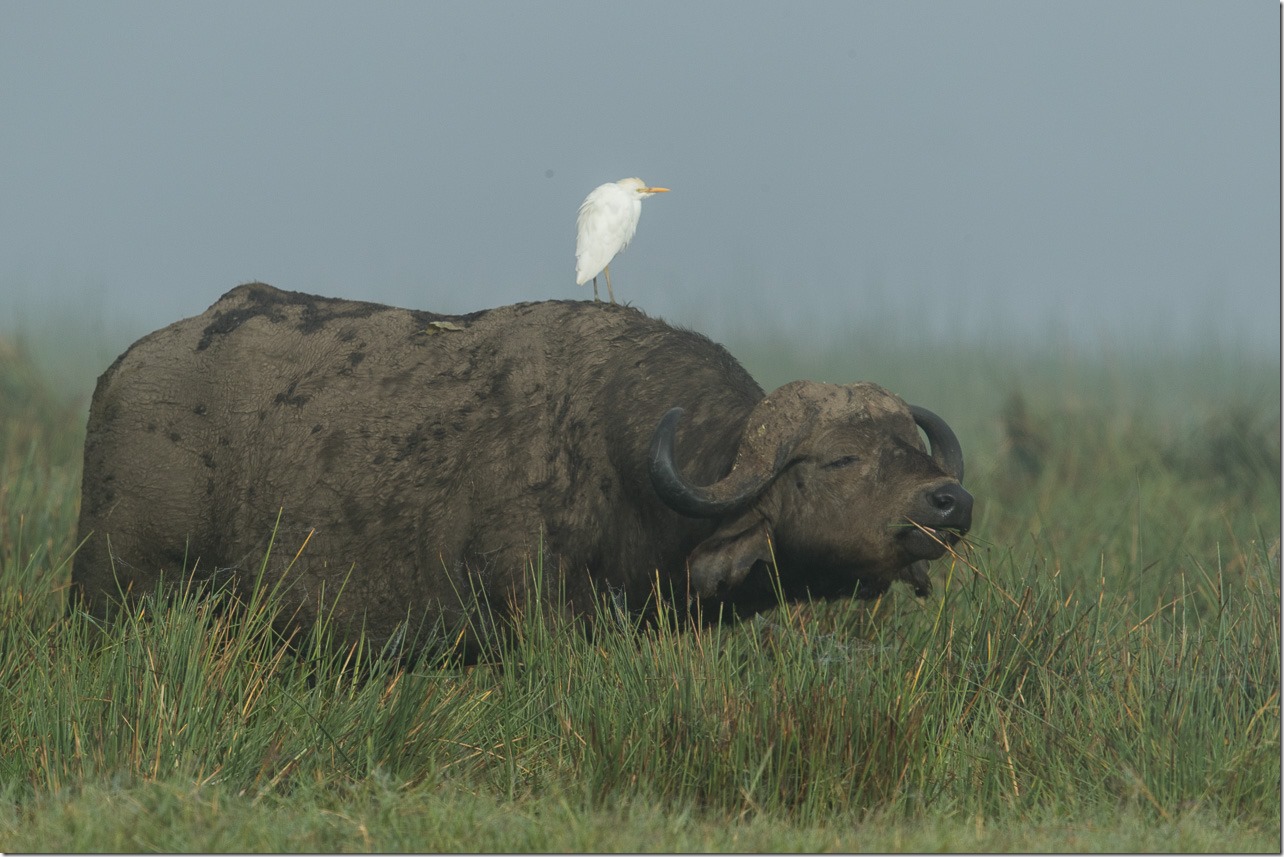 “Etwas Aussicht kann nicht schaden”, hat sich sicher dieser Kuhreiher gesagt und den Rücken des Büffels als neues zuhause auserkoren. Weit herum kommt er damit nicht, denn der Büffel steht den ganzen Vormittag praktisch am gleichen Ort.