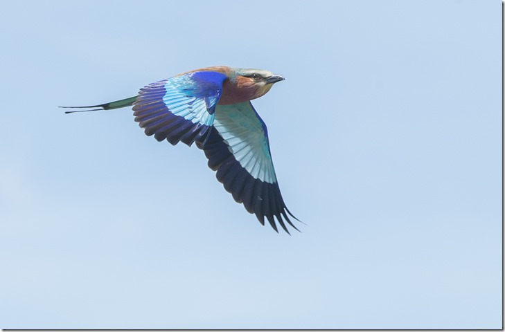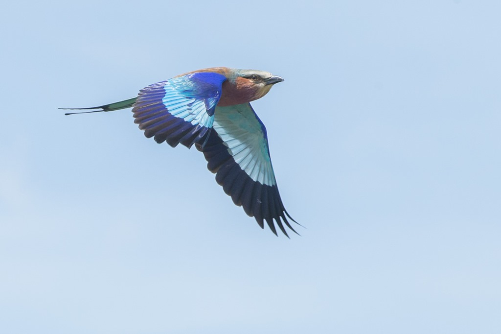Der Roller ist noch eine Spur fieser. Erratisches Abflugverhalten, schneller Flügelschlag und ein kleiner Vogel machen das Unterfangen genauso wahrscheinlich wie einen Lottogewinn. Im vorliegenden Fall war es leider nur ein Fünfer, denn die Sonne steht falsch beziehungsweise zu hoch.