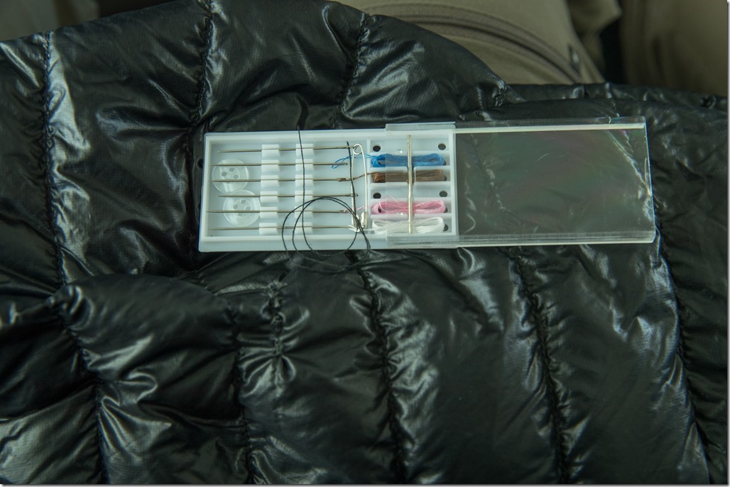 Even on the last day of our journey the N208PC repair crew had things to fix. It was carried out by the “thread and needle” sub-group as the “cable binder” group was  clueless of how to prevent feathers from leaking out of down jackets using cable binders.