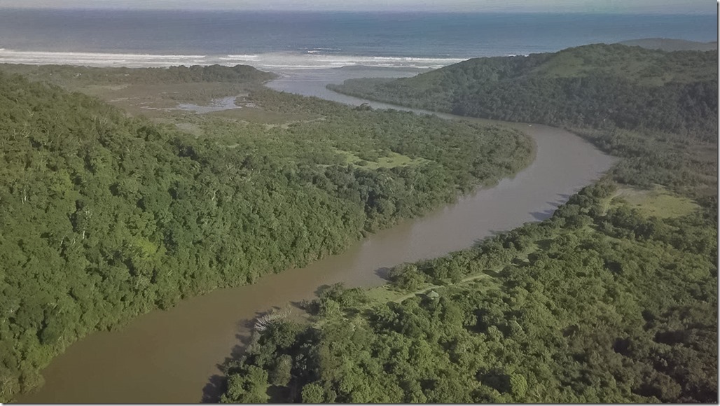 Given the beautiful landscape this was also a unique opportunity for aerial photography. While some of our group decided to kayak down the river to the sea I was planing to do some action with my drone. Action is the right word for what I was planing as hovering around 10 meters away from you I would not consider as “action”. The plan was slight more complicated than usual because I could not use anymore one of my  two mobile phones to get the video from the drone: My private one I had dropped some days ago which had converted it into a brick of non-functional electronics. And the company phone had decided to stay in Madagascar … So I had to use my tablet to get the video feed from the drone. This was working perfectly fine with one minor glitch: The tablet had only 13% left of battery. Trying to recharge it in the lodge was failing as this was overloading the solar panel driven electrical supply. So 13% remaining battery it was and off I went with the drone. I was following the river trying to spot the kayaks of our group.