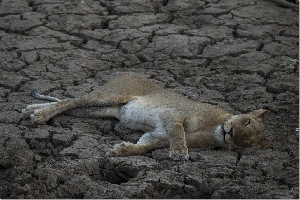Stellvertretend führ ein Rudel Löwen ist dieses Exemplar. Alle anderen sind in ähnlichen Posen mit sich selbst beschäftigt und ignorierten uns total.