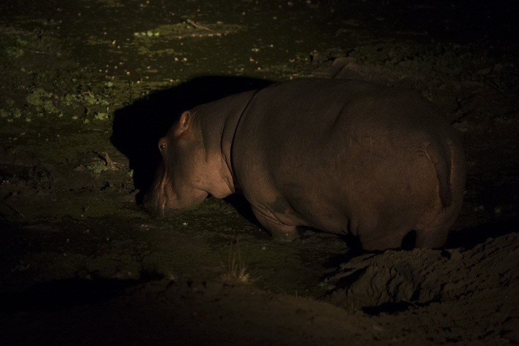 Die Lodge ist wunderschön an einem Fluss gegenüber des Southern Luangwa National Parks gelegen. Der Fluss führt zwar kaum noch Wasser. Aber in dem wenigen Rest tummeln sich einige Hypos. Für die nächtliche akustische Unterhaltung ist also gesorgt.