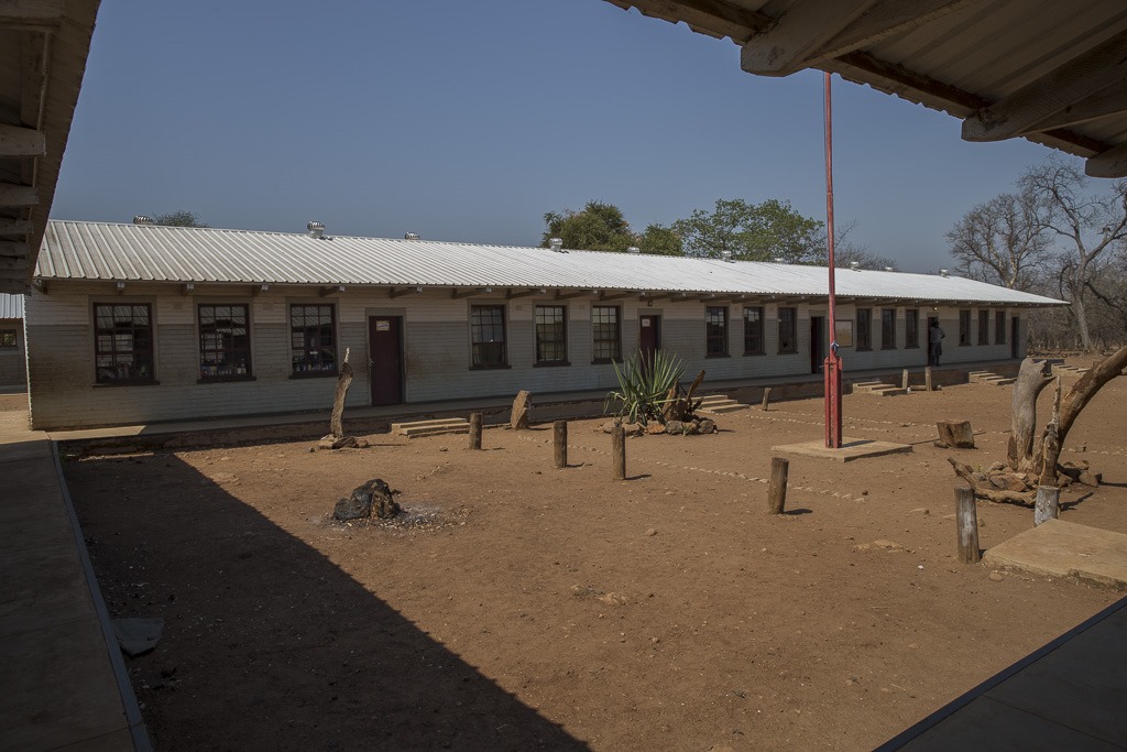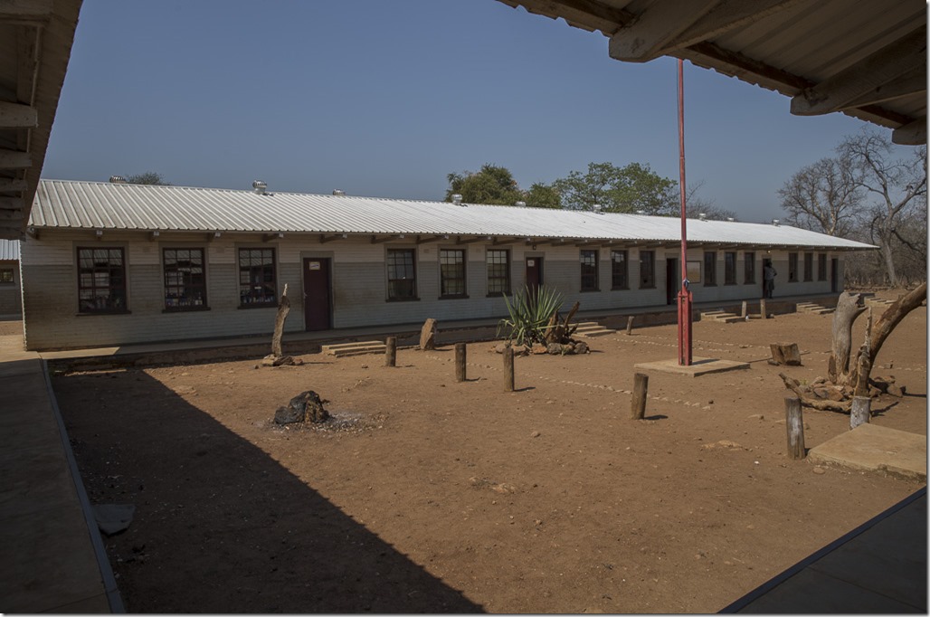 Wenig später kommen wir zur Schule. Da heute aber Samstag ist, liegt sie verlassen da.