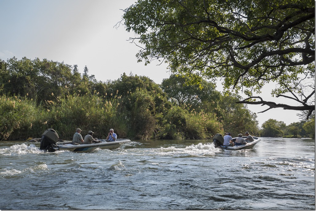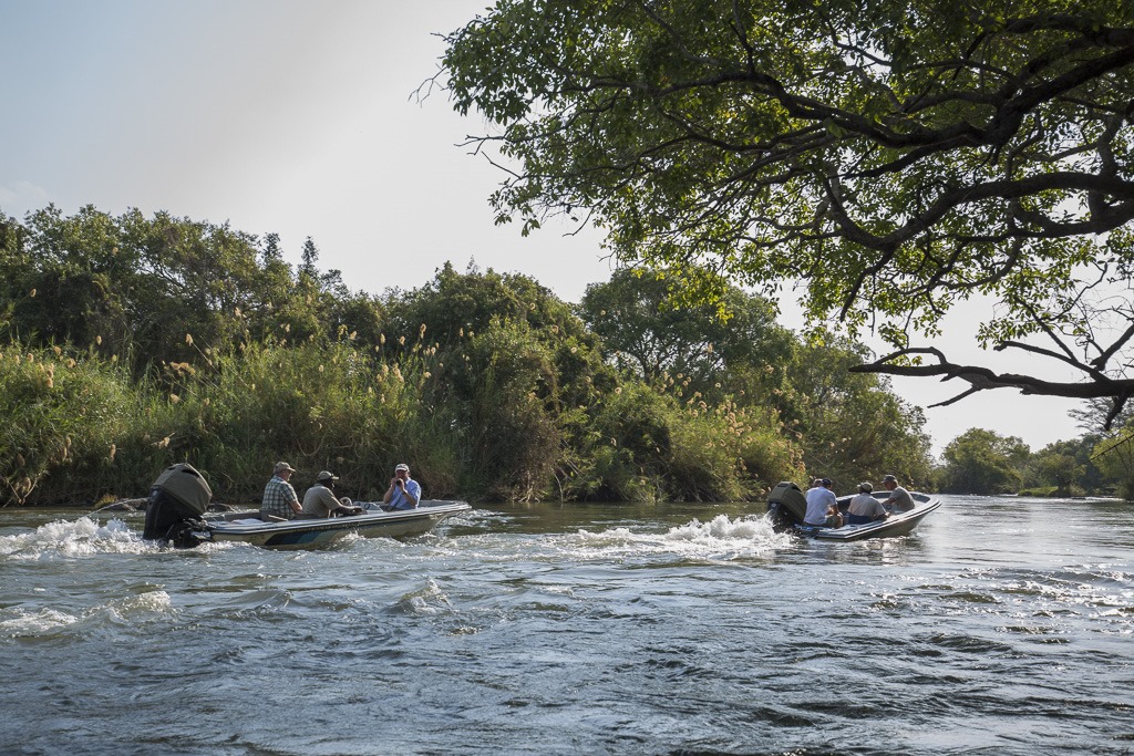Am Nachmittag geht es dann wieder auf mit Booten auf den Chobe Fluss. Die Stelle unmittelbar vor der Lodge ist so seicht, dass bei den Booten der Motor angehoben werden muss und deshalb nur eine langsame Fahrt möglich ist.