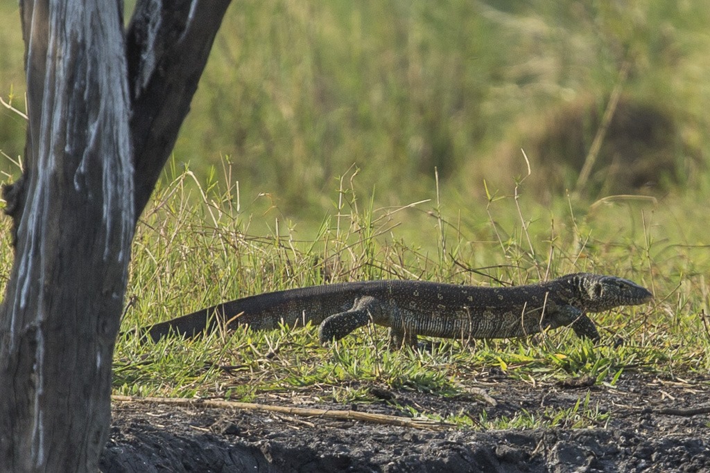 Ein anderes Boot hatte einen Leguan schon gestern sehen, wir waren heute an der Reihe. Sie scheinen sehr scheu zu sein. Nach diesem Bild verschwand er sofort wieder im hohen Grass.