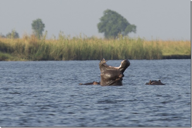 Bei der Fahrt auf dem Chobe muss man jederzeit mit Hypos rechnen, die untergetaucht nicht auszumachen sind. Unsere Bootsfahrer kennen aber die Stellen und umfahren sie geschickt.