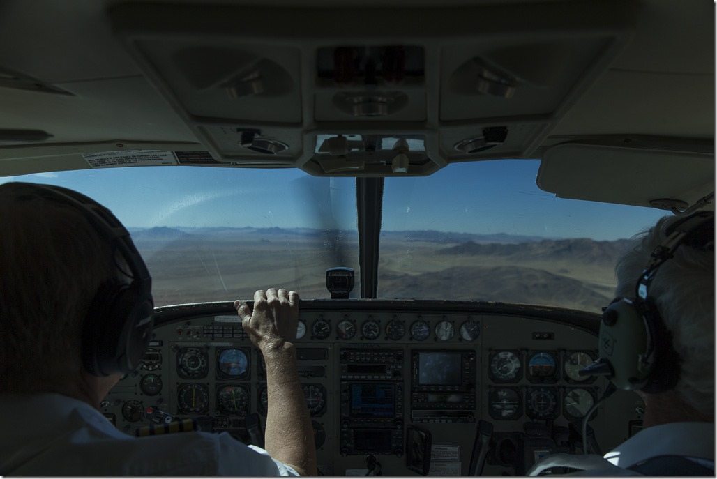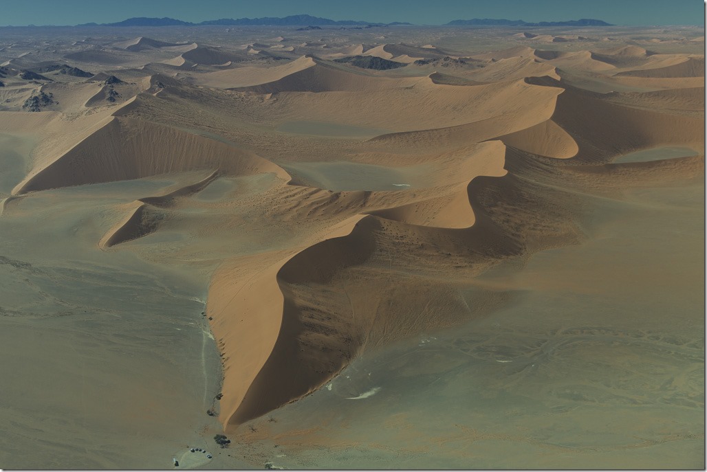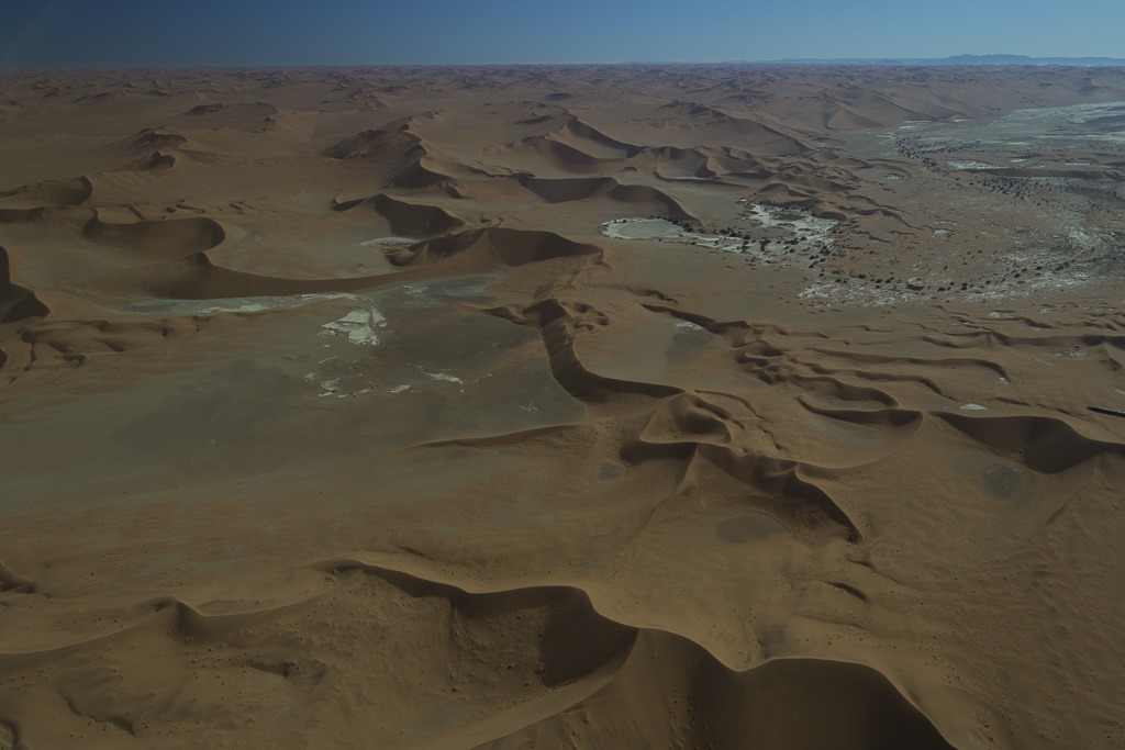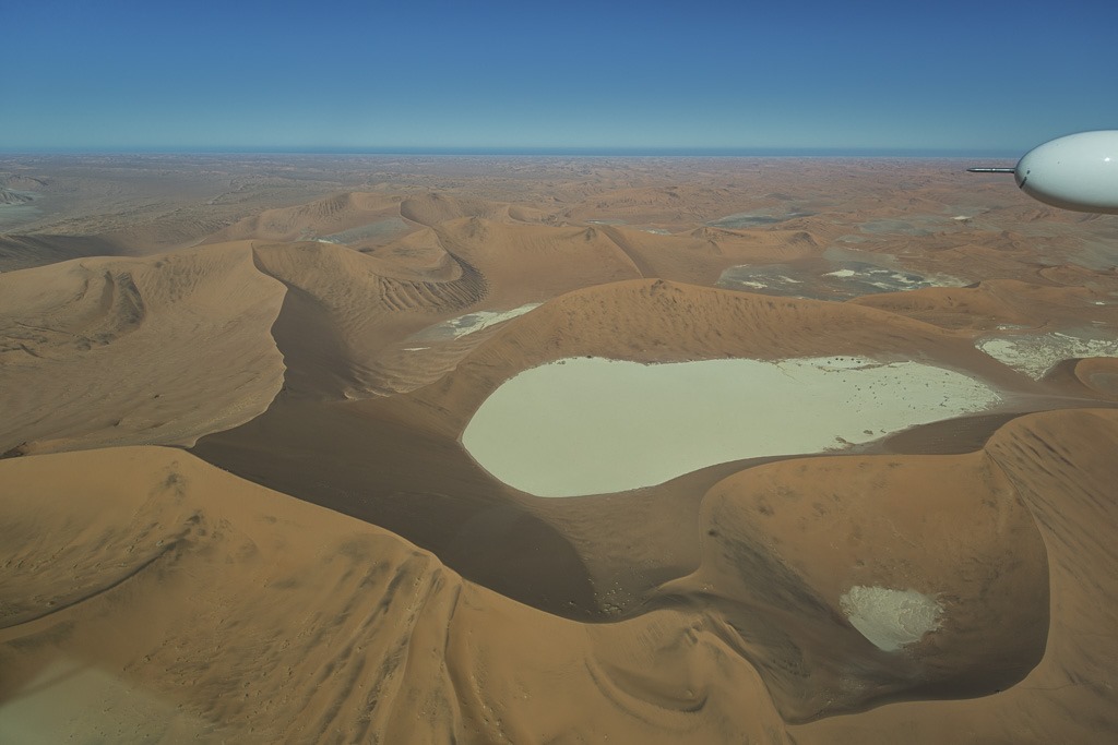 Das Ziel der heutigen Reise, die Wolwedans Lodge, liegt nur etwa zwanzig Flugminuten entfern. Aber statt direkt dorthin zu fliegen, wollen wir zuerst noch einen “Scenic Flight” über die Dünen machen. Selbst mit diesem Abstecher sind wir heute weniger als eine Stunde in der Luft.
