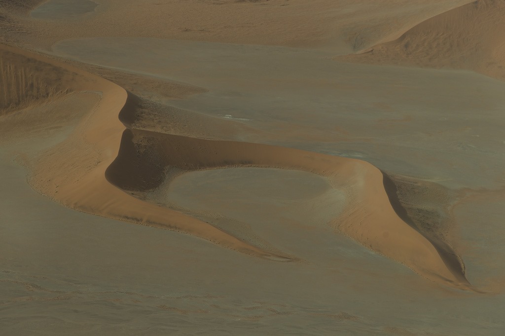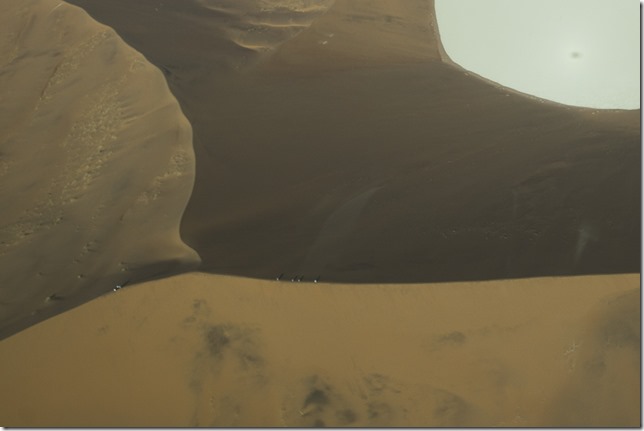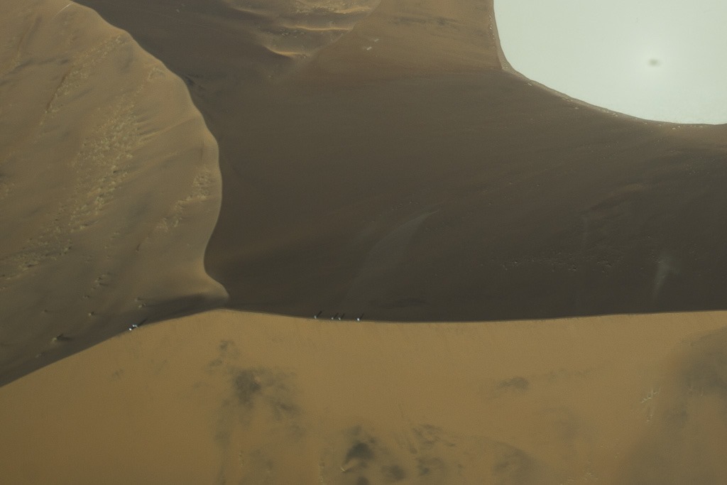 Aufgrund der morgendlichen Temperatur wird der Flug auch nicht durch Turbulenzen gestört. Hier sind wir bei der Umrundung von Deadvlei und Big Papa