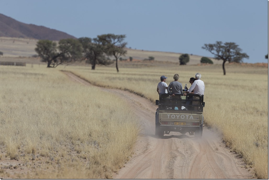 Zwei Fahrzeuge warten bereits schon auf uns. Es erstaunt immer wieder, wie gut es jeweils bei den Lodges mit dem Abholservice klappt. Wir mussten auf der ganzen Reise nie länger als ein paar Minuten warten. Dass alles so reibungslos geht liegt aber sicher auch an  “Georg Ipad”  mit seiner grossen Afrikaerfahrung.