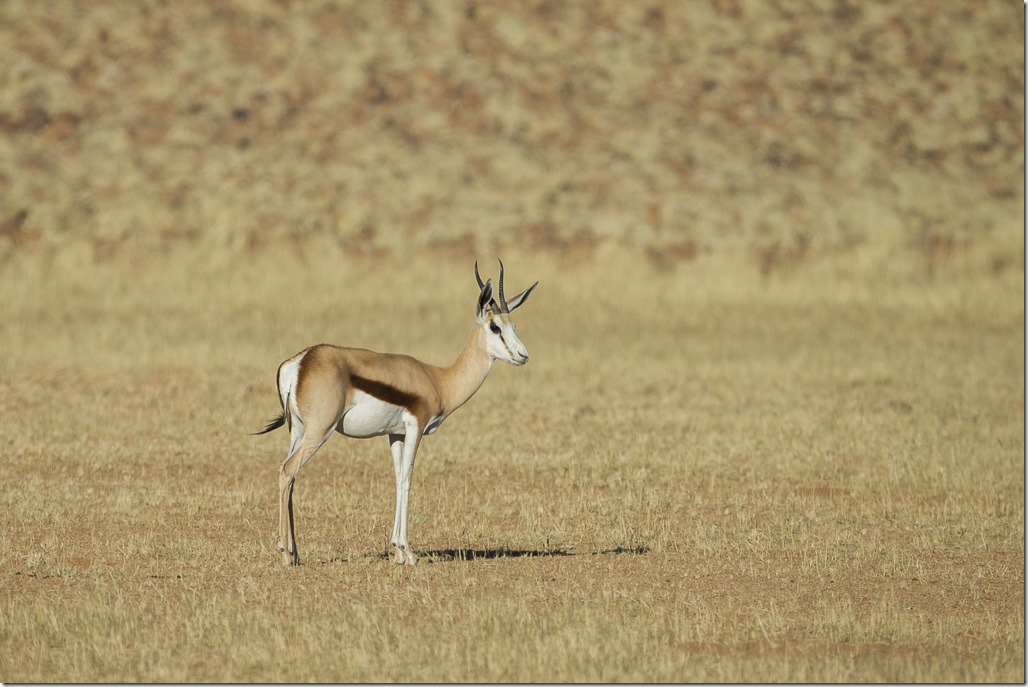 So ein Zufall: Das mit dem Wissen-was-auf-dem-Teller liegt trifft auch heute zu. Ein Springbock, von unserem Koch als “90 Degree Jumping Goat” – “90 Grad Sprungziege” vorgestellt.