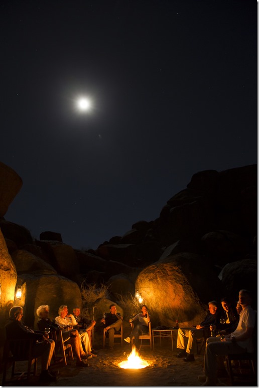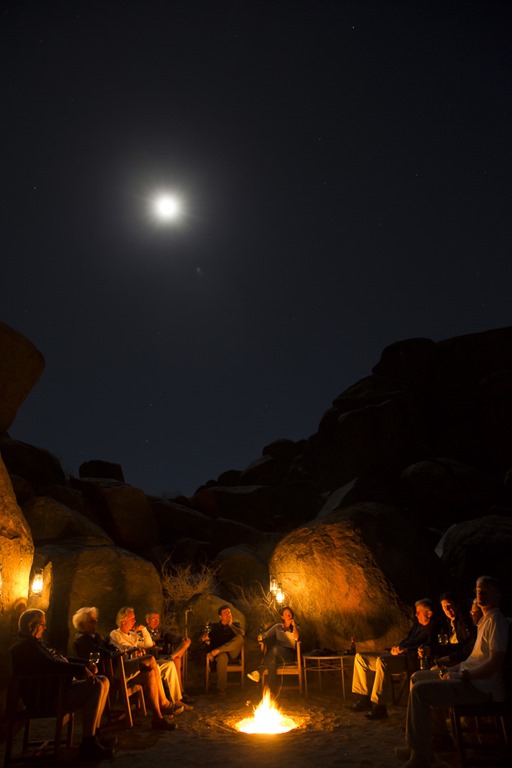 Wieder zurück im Camp gibt es zuerst den Aperitif am Feuer, danach ein Nachtessen mit viel Liebe zum Detail.