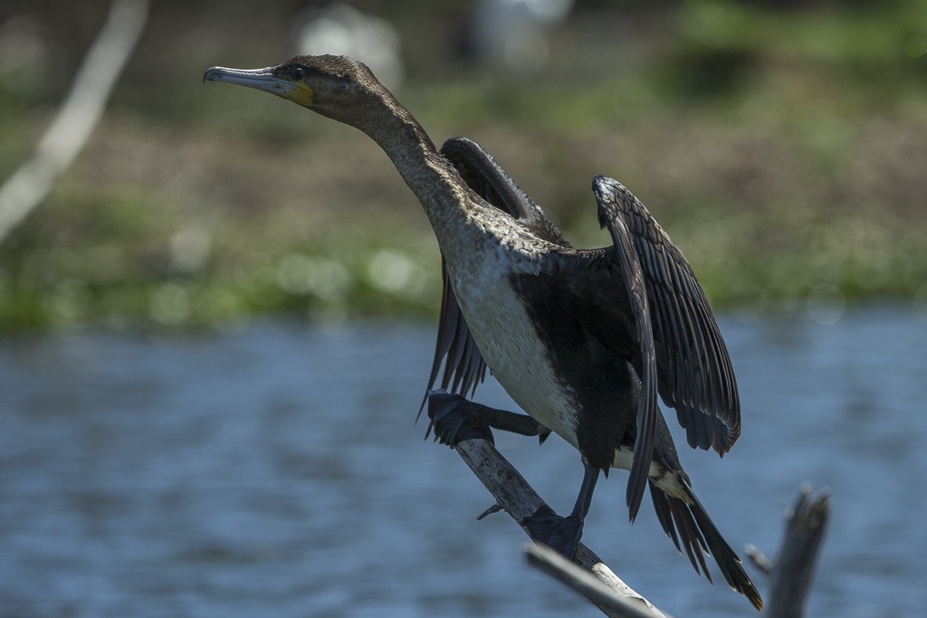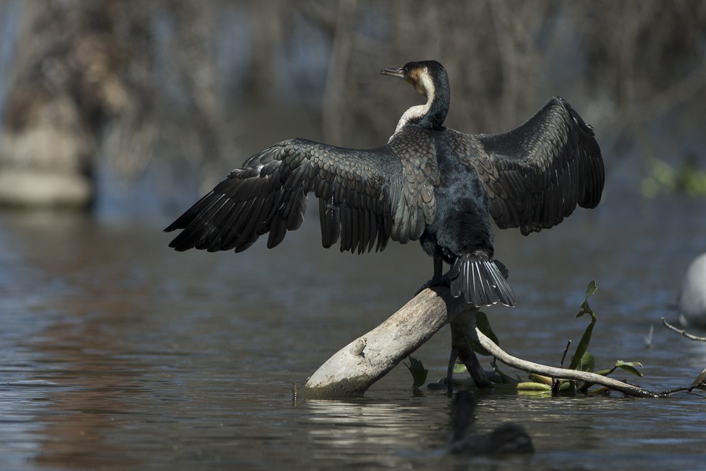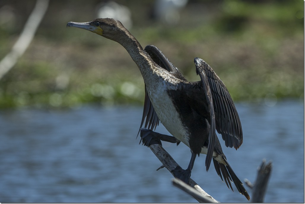 Ein Kormoran beim Trocknen der Flügel.