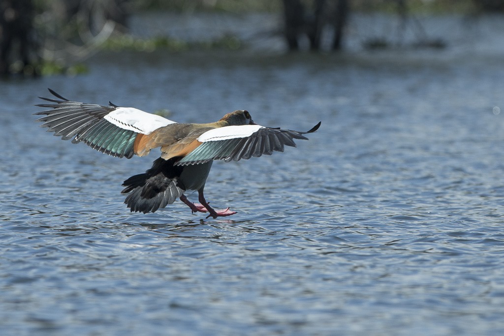 Eine “Egyptian Goose” – “Nilgans” mit einer perfekten Zweipunkte Landung.