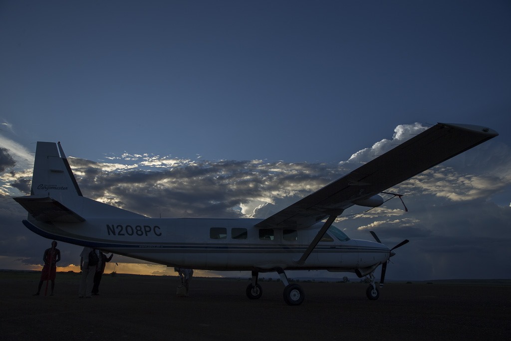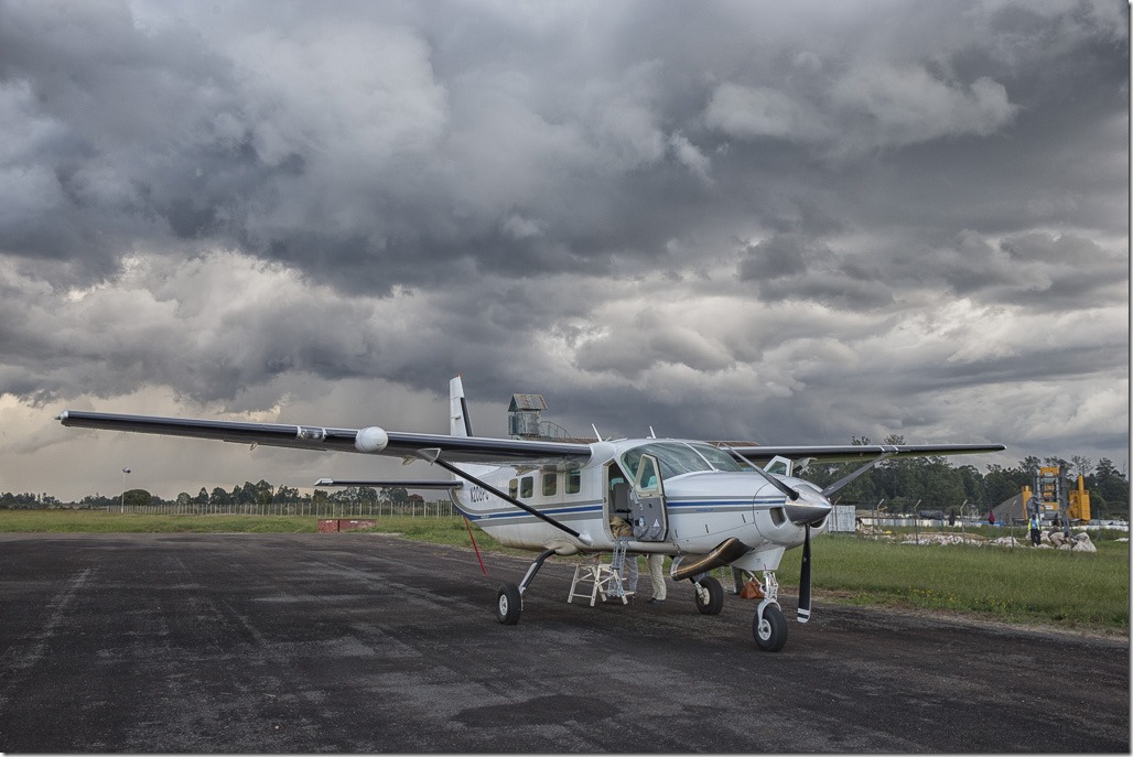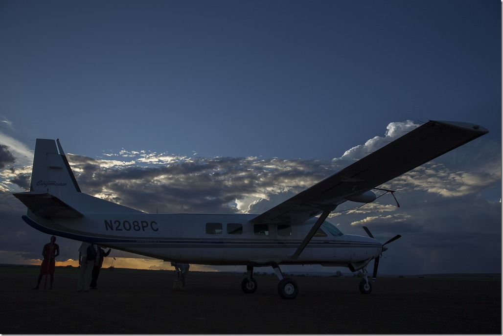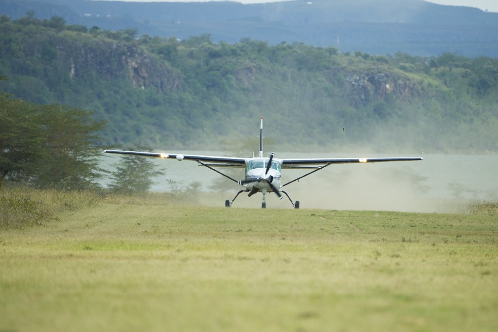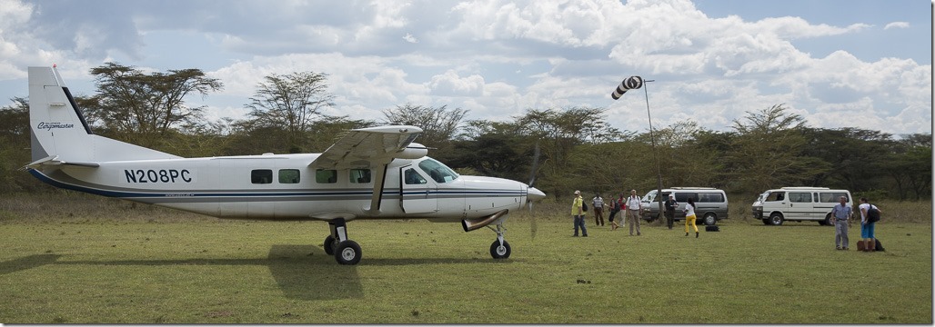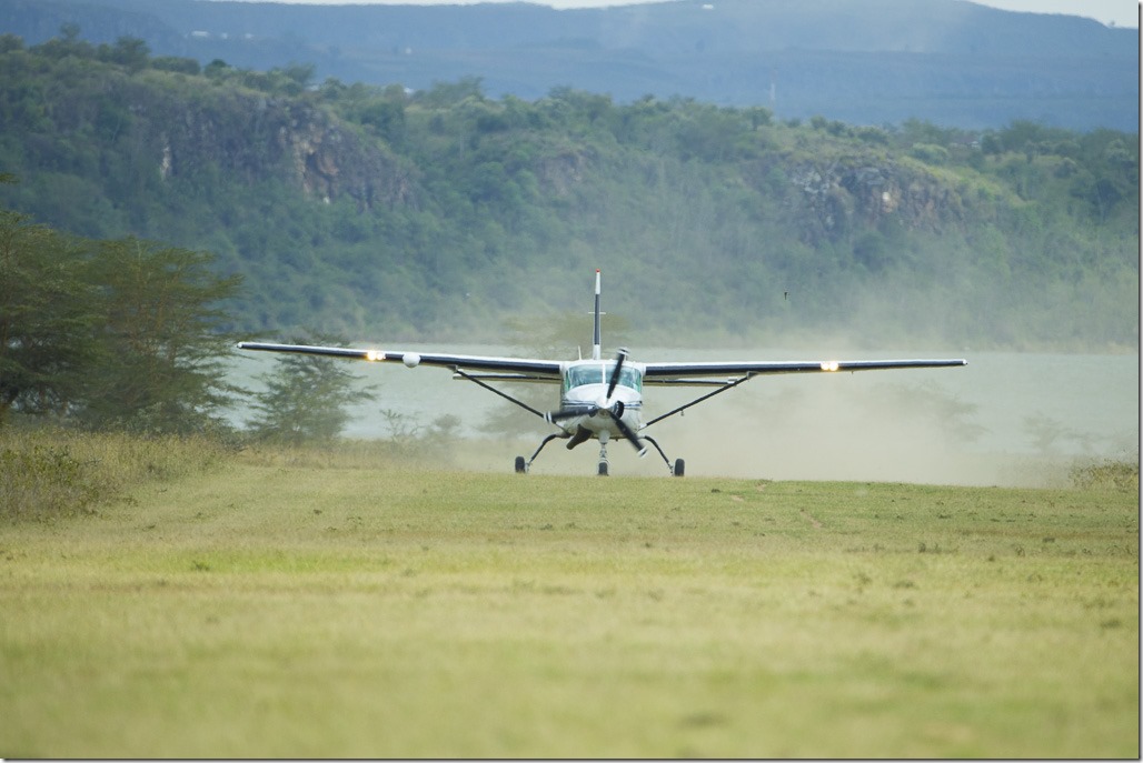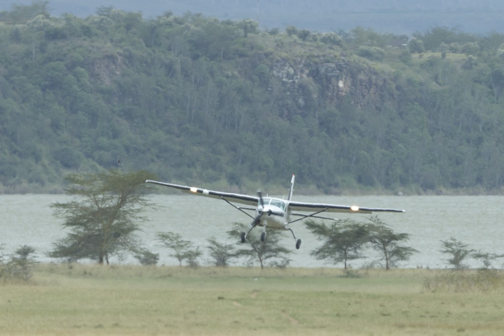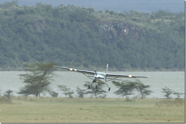 Die Zeit ist leider viel zu schnell vorbei. Wir müssen wieder zurück, damit wir rechtzeitig zum Masai Mara Park weiterfliegen können. Da der Landeplatz von gestern für eine vollbesetzte Maschine etwas zu kurz ist, wird der Flieger von unseren Piloten kurz auf einen mit einer längeren Bahn “umparkiert”. Das gibt uns auch die Möglichkeit, eine Landung einmal von aussen zu sehen.