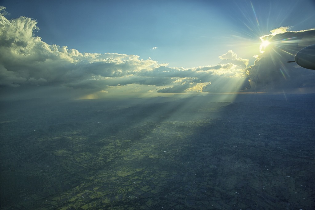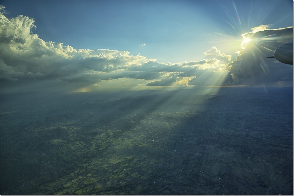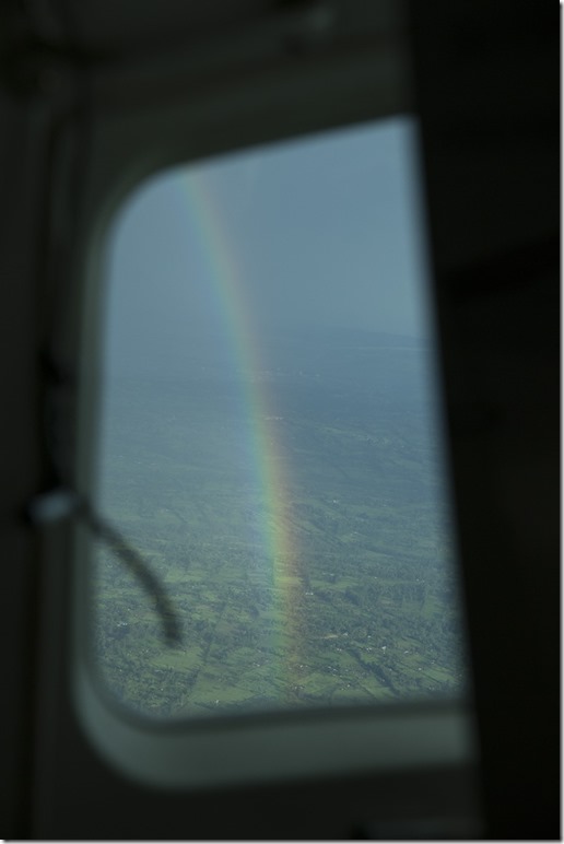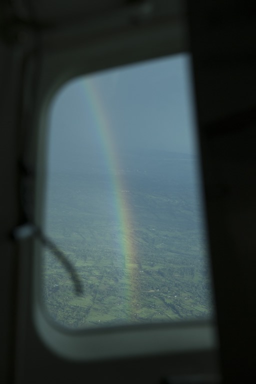 Wir durchfliegen einige Regenschauer und es gelingt mir sogar, einen Regenbogen zu fotografieren.