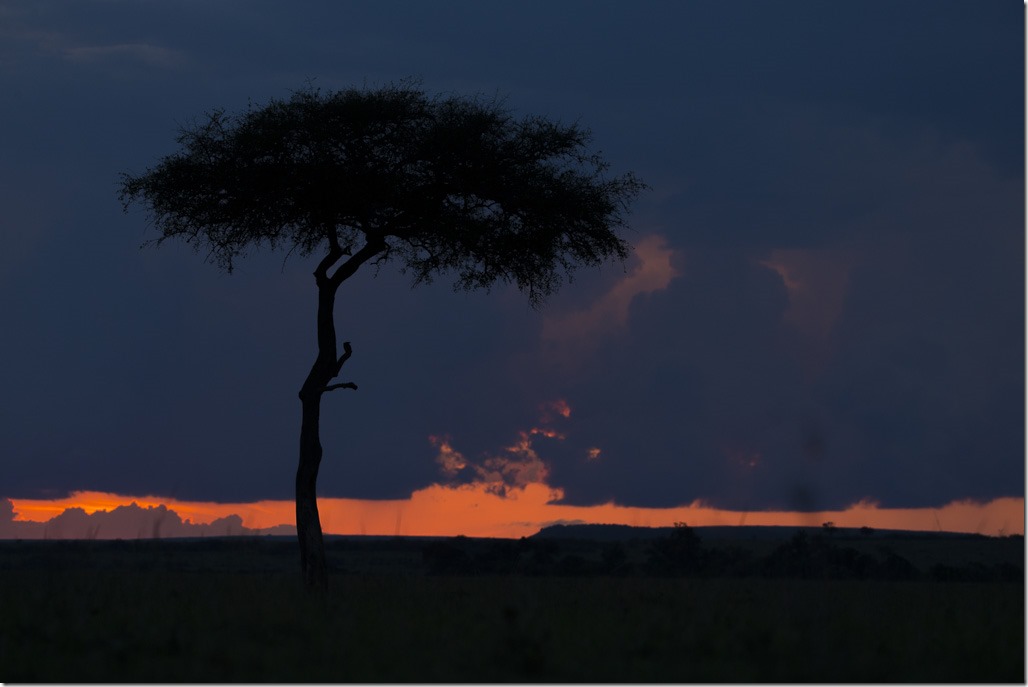 Auf der Fahrt ins Camp gibt es ein kurzes “Game Drive”-Warmup. Für mehr als eine paar Sonnenuntergangsfotos reicht das verbleibende Licht allerdings nicht mehr.
